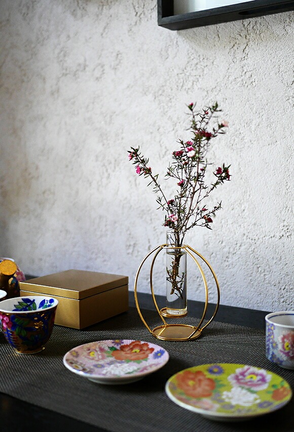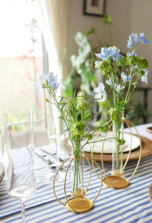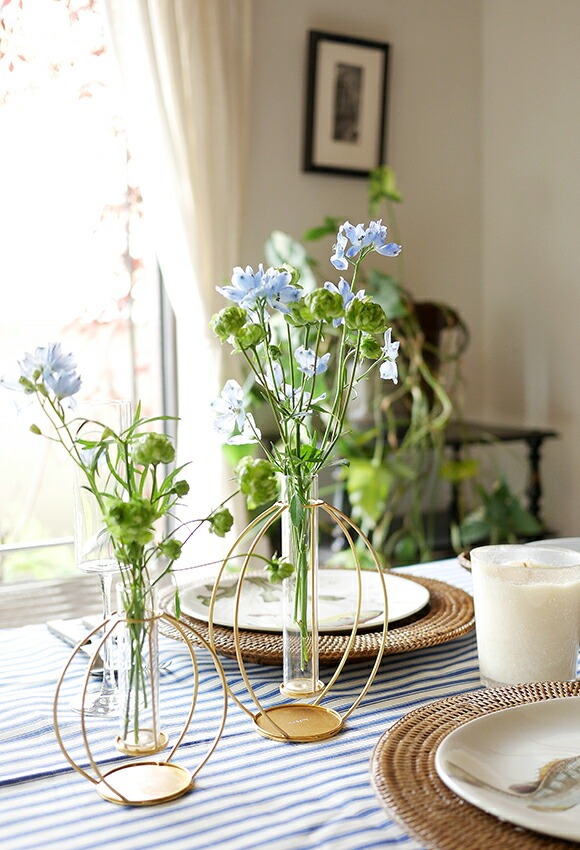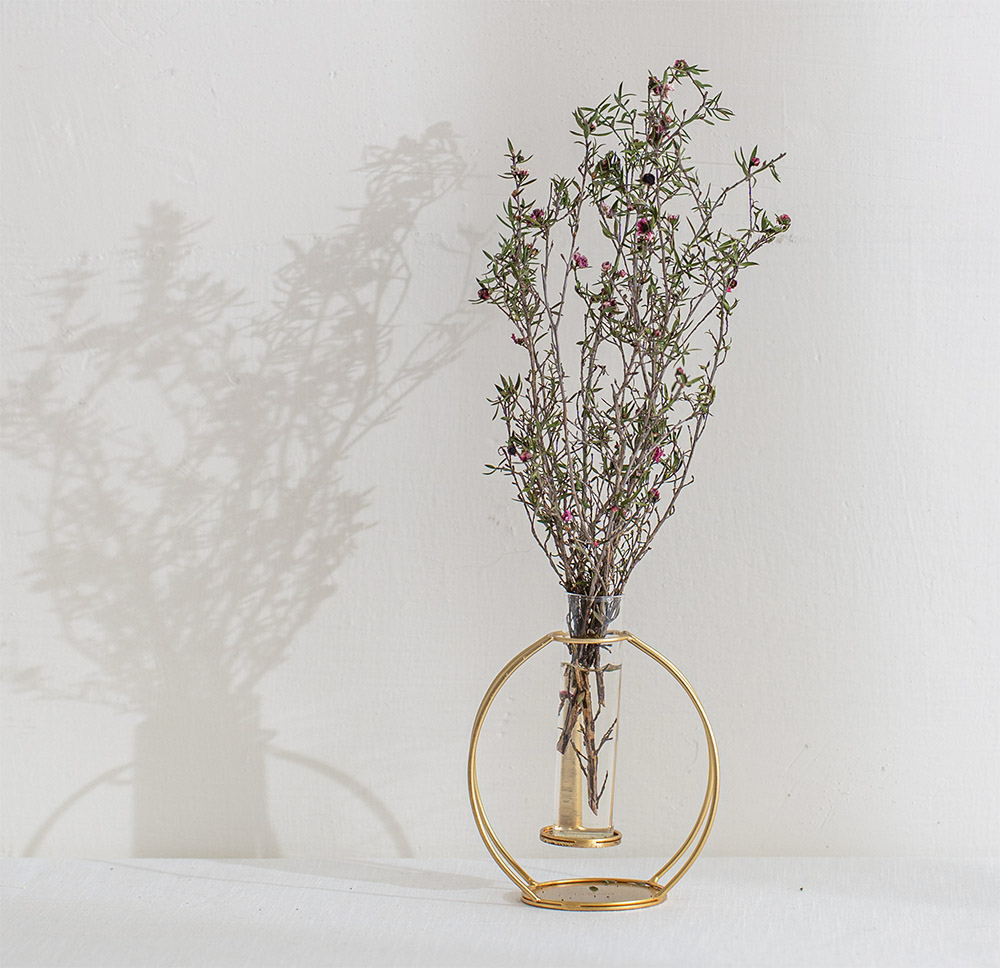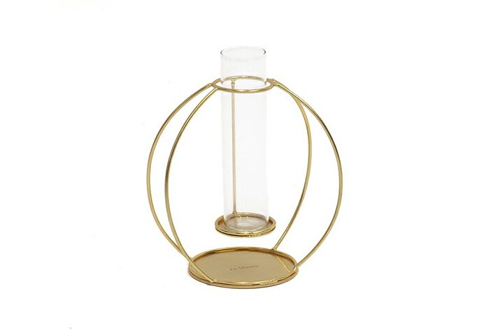這款花器採用仿黃銅質感的鐵藝框架設計,不僅充滿現代感,也展現出強烈的存在感。