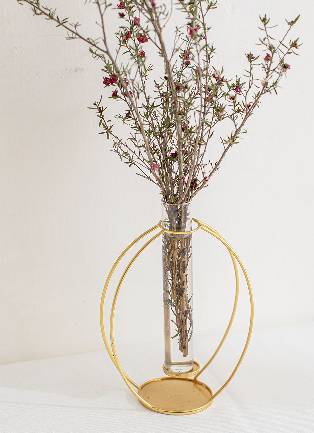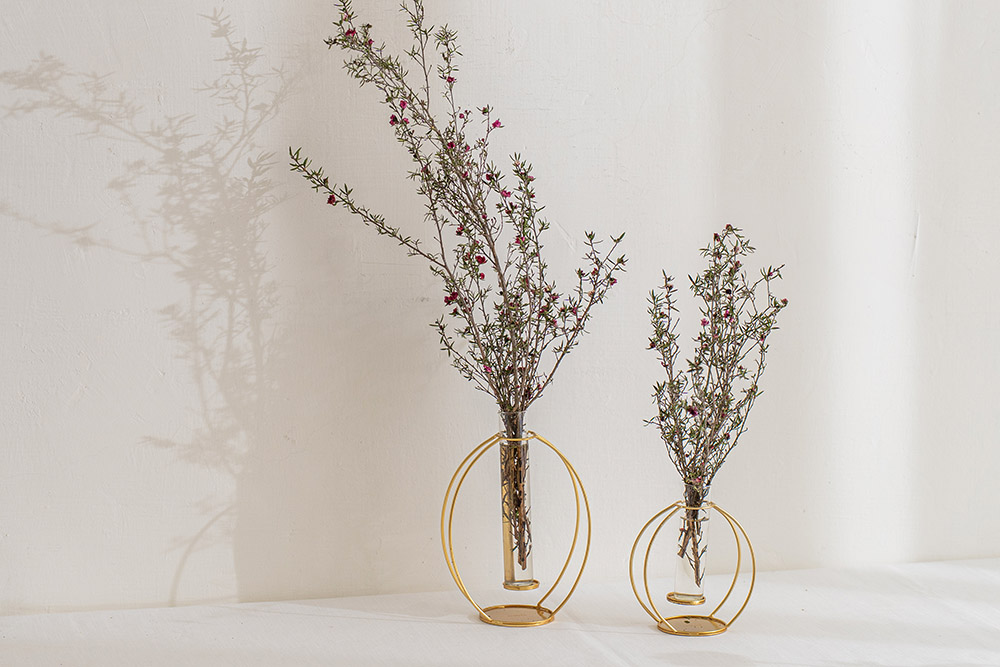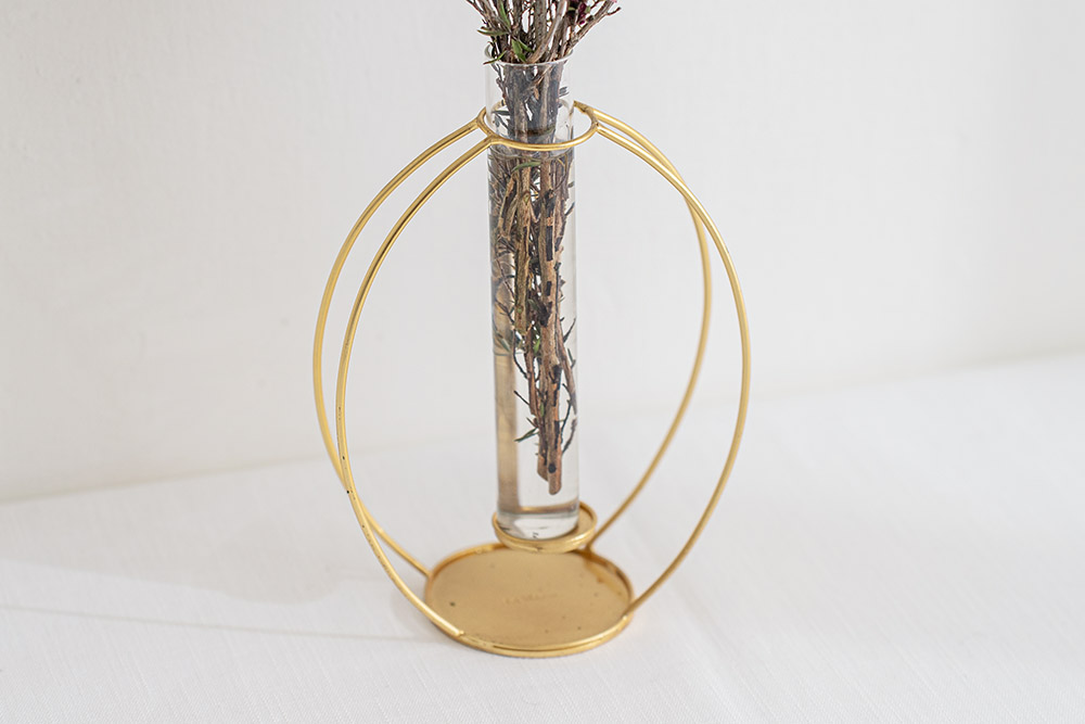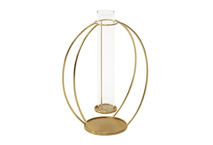 這款花器採用仿黃銅質感的鐵藝框架設計,不僅充滿現代感,也展現出強烈的存在感。
