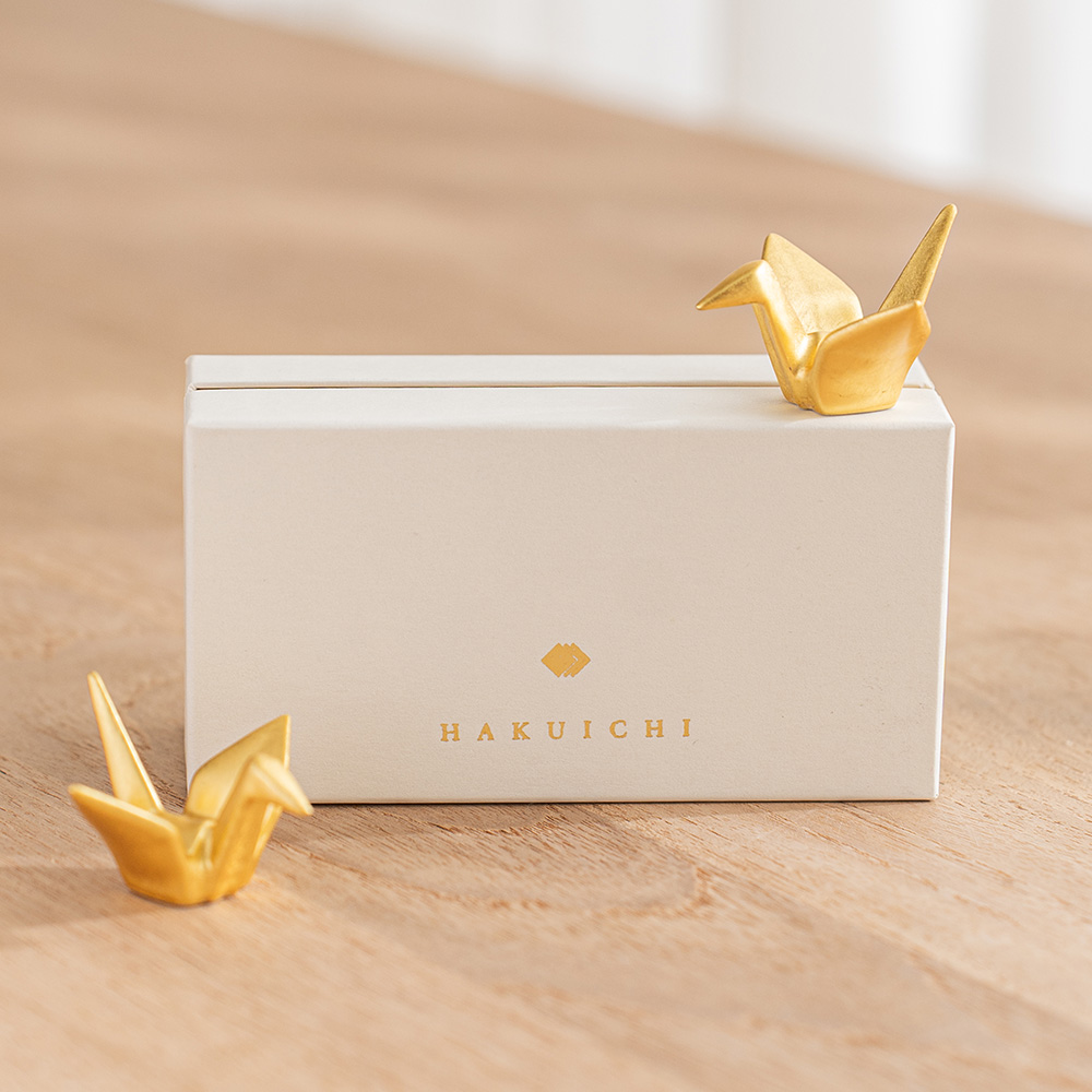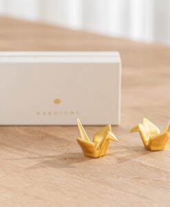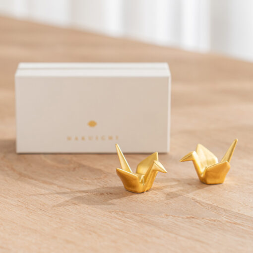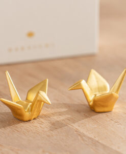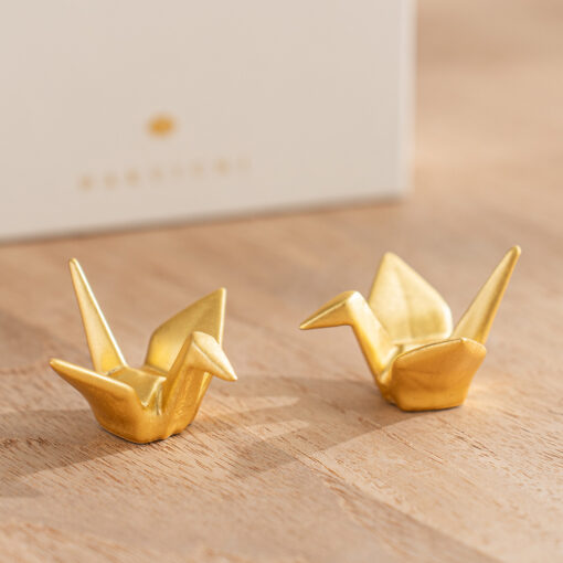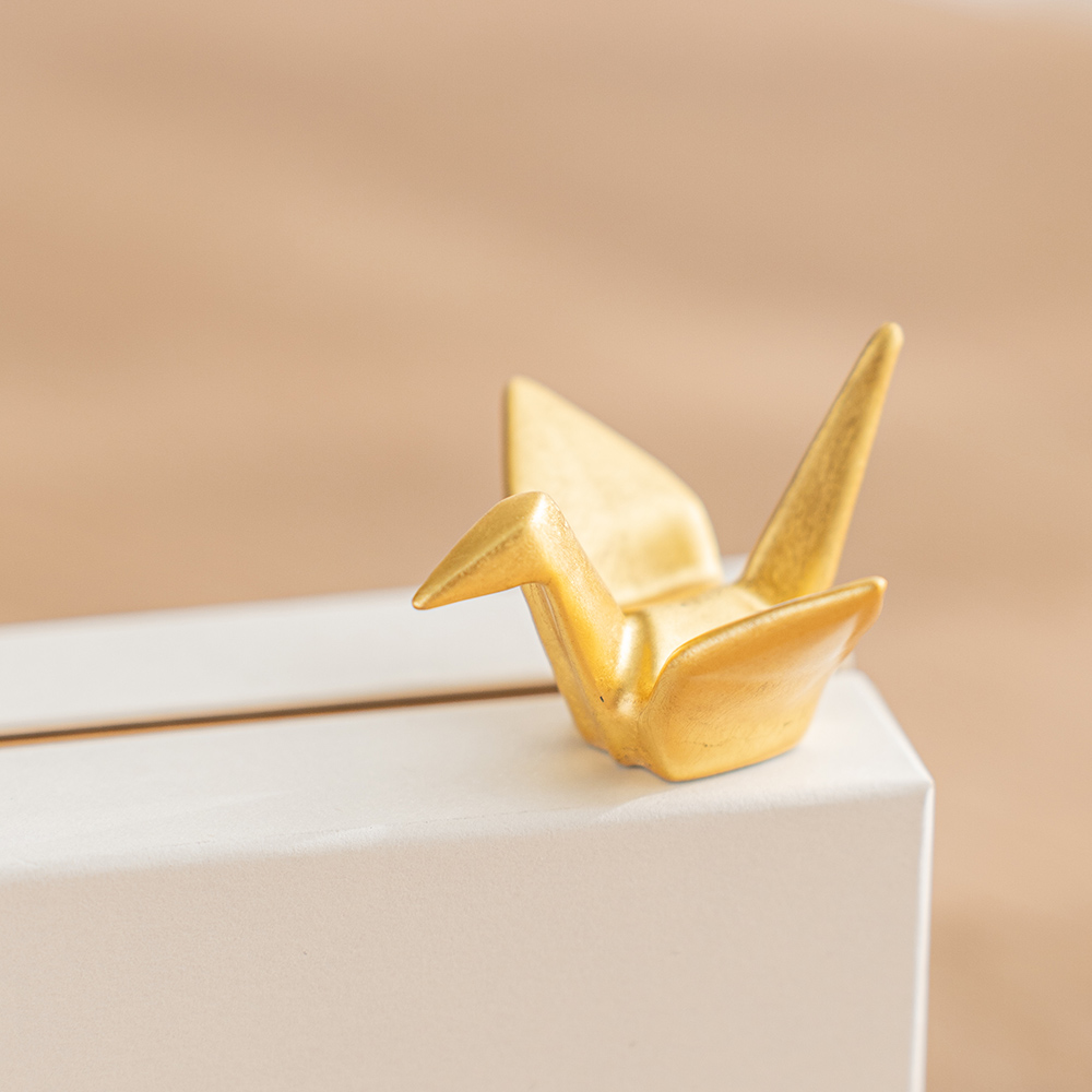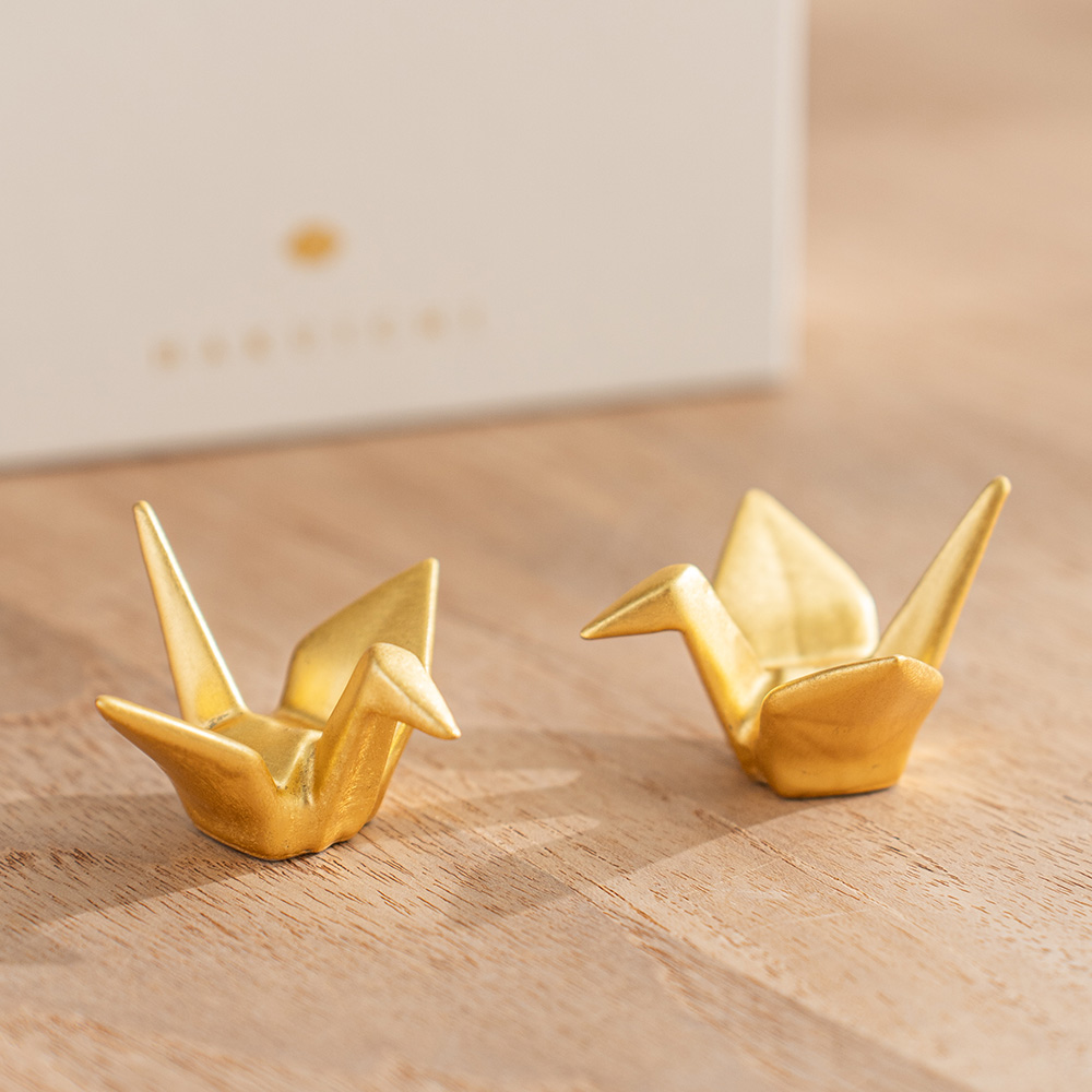 以經典的「摺紙鶴」為靈感,流暢的稜線勾勒出飛鶴的靈動,鶴象徵著「長壽」與「繁榮」,成雙成對的對鶴,更寓意「夫婦圓滿」與「長久守護」,商品附有品牌原裝精緻禮盒,為新婚賀禮、祝壽慶典,或是贈送友人的最佳珍貴獻禮選擇。