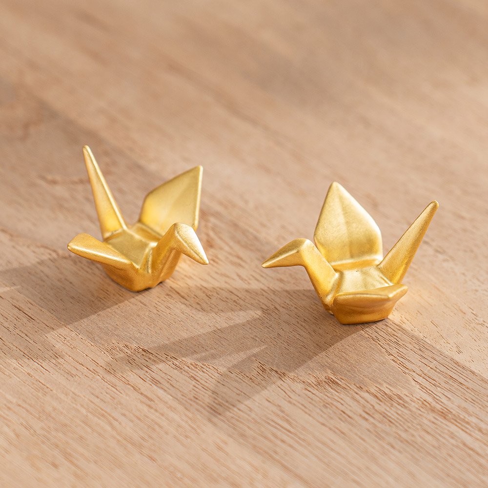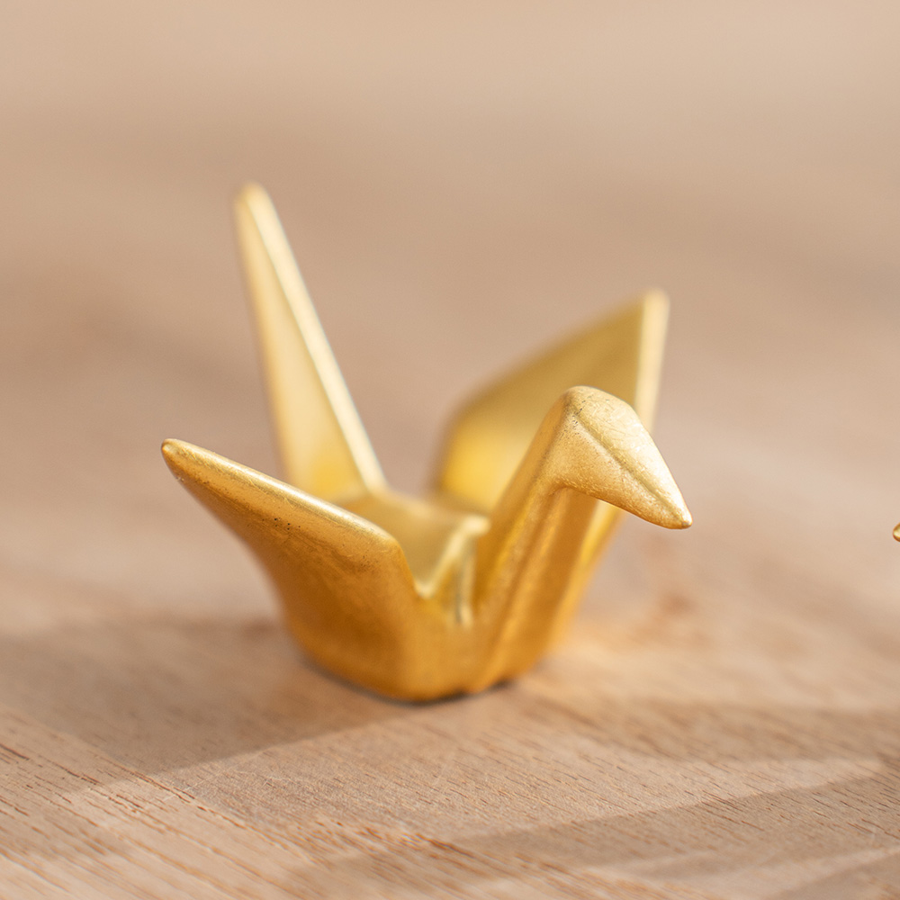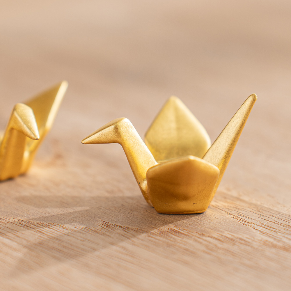 以經典的「摺紙鶴」為靈感,流暢的稜線勾勒出飛鶴的靈動,鶴象徵著「長壽」與「繁榮」,成雙成對的對鶴,更寓意「夫婦圓滿」與「長久守護」,商品附有品牌原裝精緻禮盒,為新婚賀禮、祝壽慶典,或是贈送友人的最佳珍貴獻禮選擇。