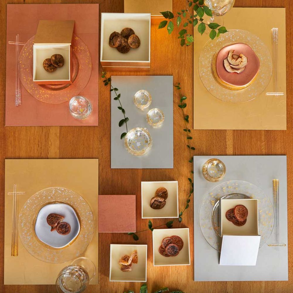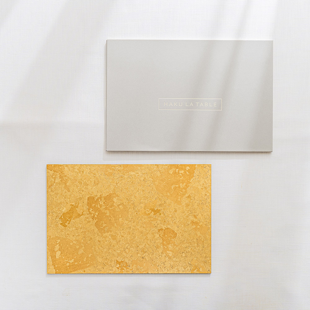 這款餐墊打破傳統金箔沉重的感覺,由金澤職人手工製作,將極薄的金箔碎片隨機撒佈(FLAKE技法),深受米其林星級廚師和頂級餐廳策劃師的青睞。每件餐墊的紋理皆獨一無二,30cm尺寸適合搭配午茶點心擺盤時使用,無論是日式還是西式料理都能增添奢華感,打造更閃閃發光的餐桌佈置,以更優雅的方式享受您的美好食光。