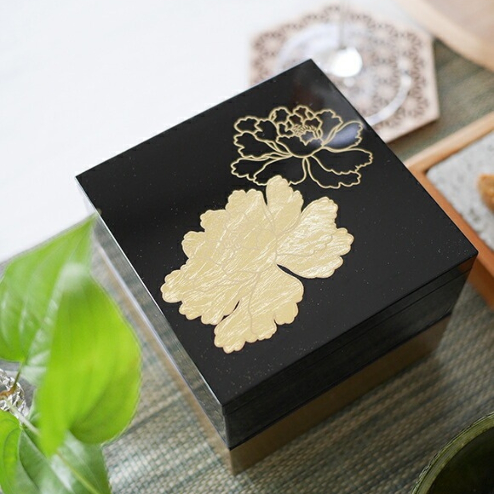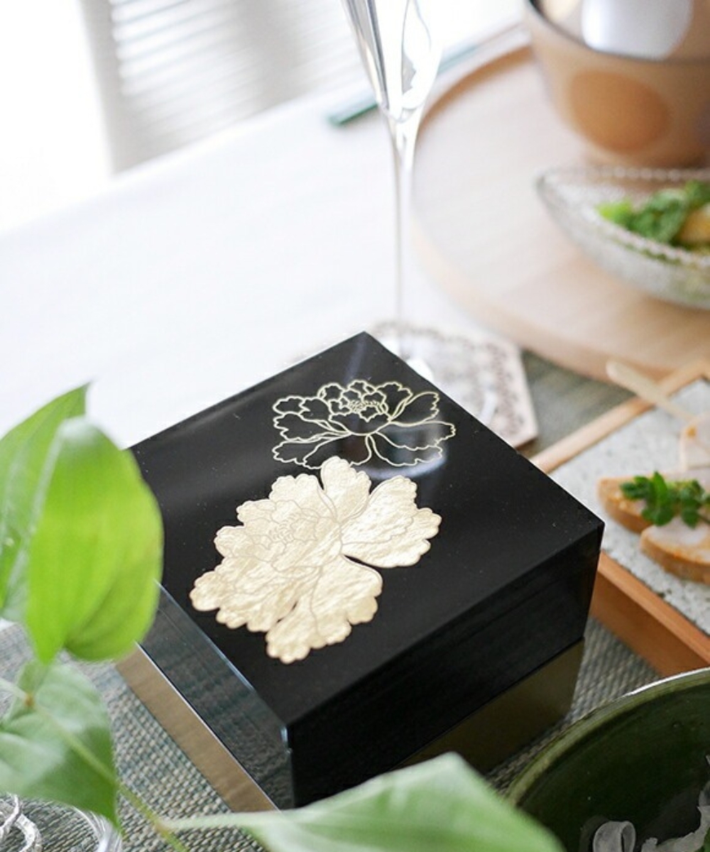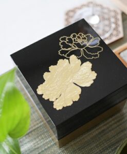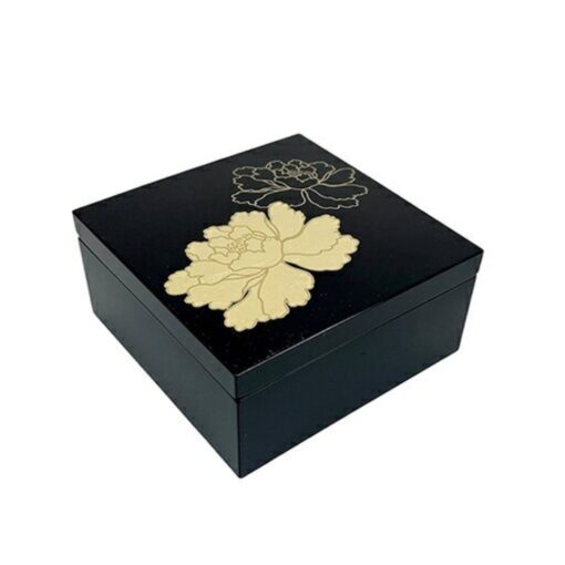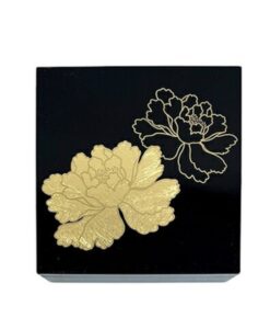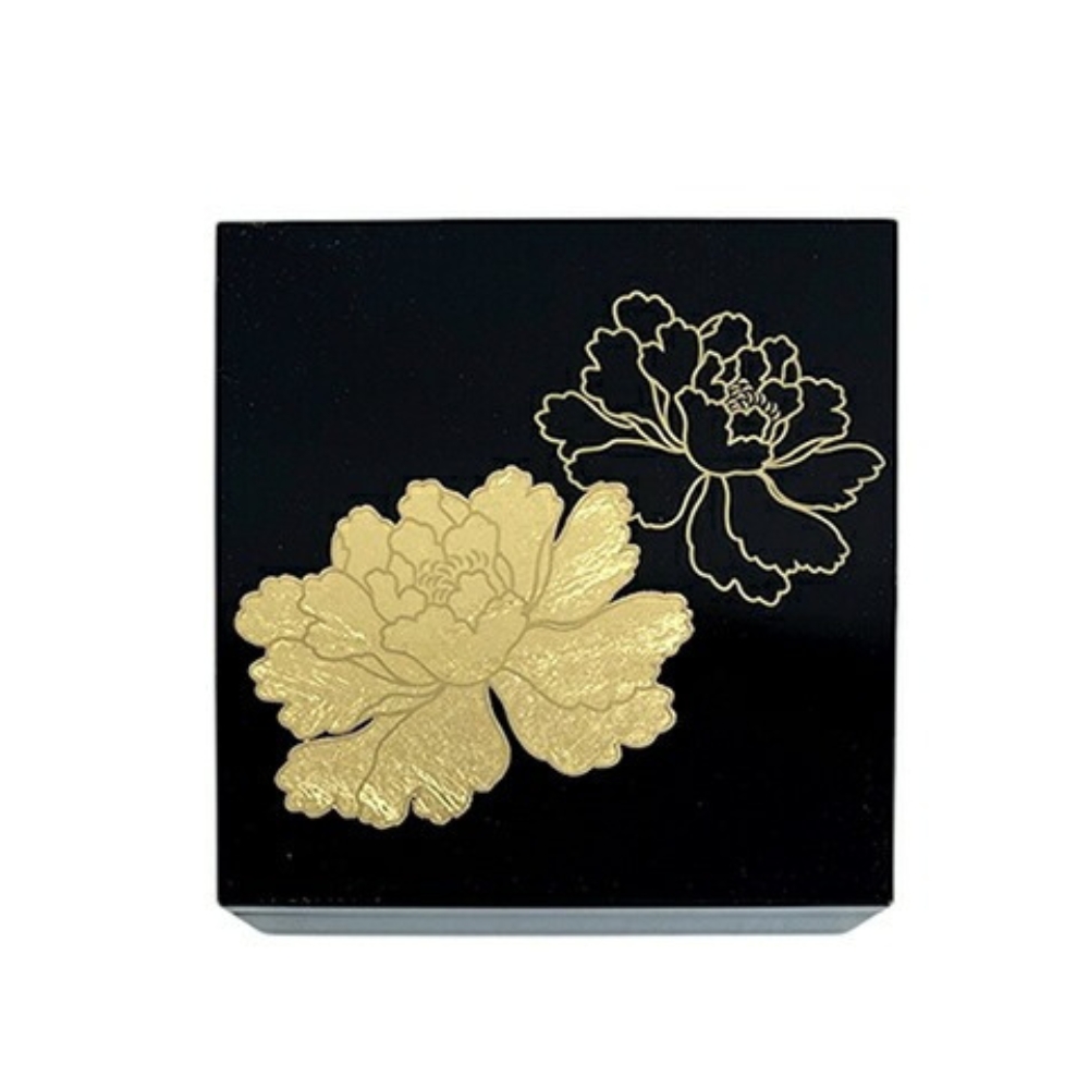 3.5寸方形漆器盒 金箔牡丹 黑 /越前漆器