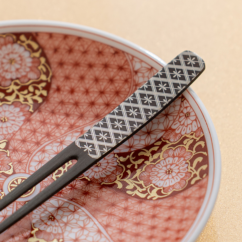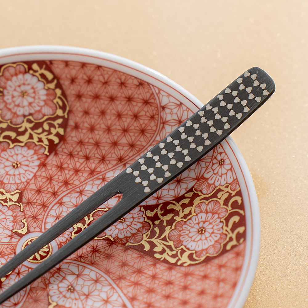 現代風格日式餐具,有著禪意的平靜色調帶來獨特感,以傳統而熟悉的和風圖樣,呈現華麗細膩的器皿。此系列以創新特殊技術「黑色氧化上色」,實現了與塗料,染料不同的獨特顏色,優異的耐久性和耐腐蝕性,不用擔心脫色問題。為你的咖啡茶點時光,帶來不凡的風情。
