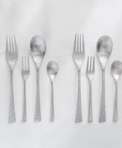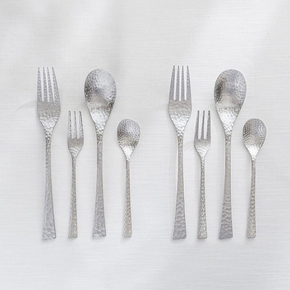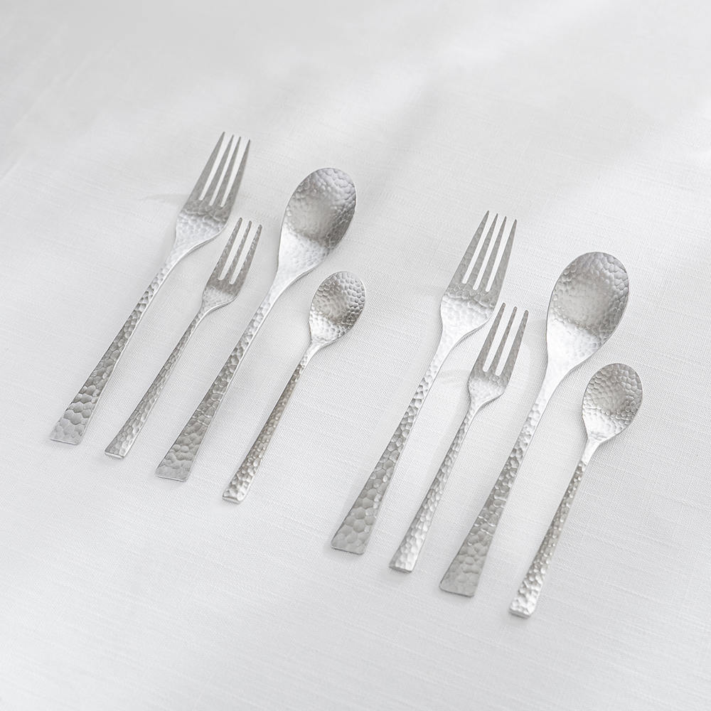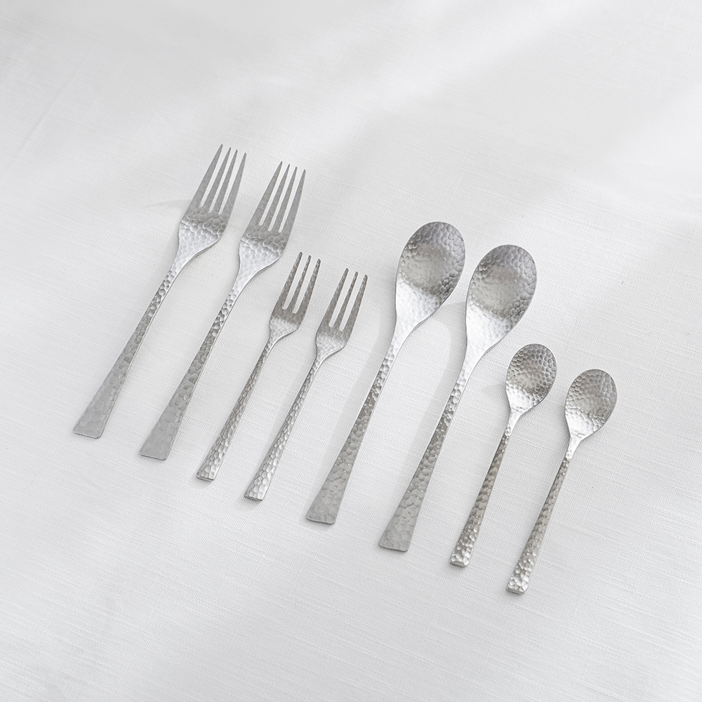 這款 WASABI 鎚目系列餐具,是由日本新潟縣燕市的知名製造商生產,專為結合實用性與美感而設計。產品特色包括:
