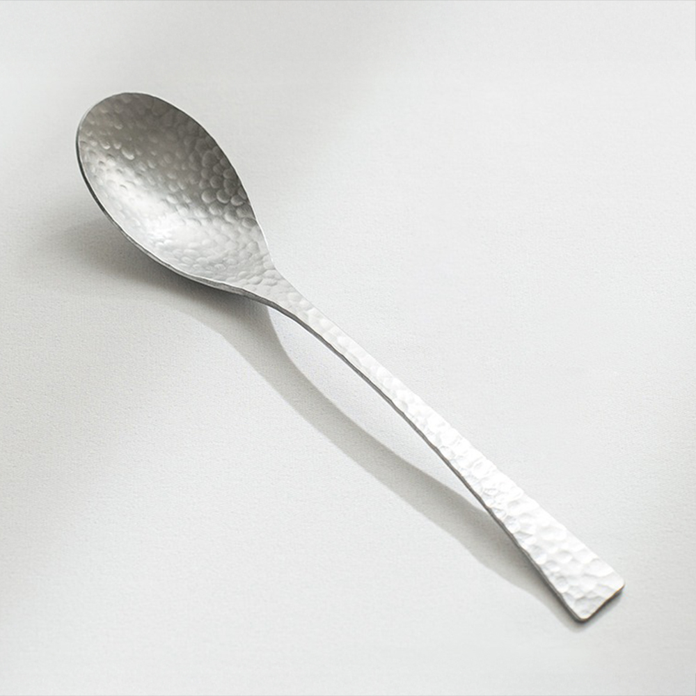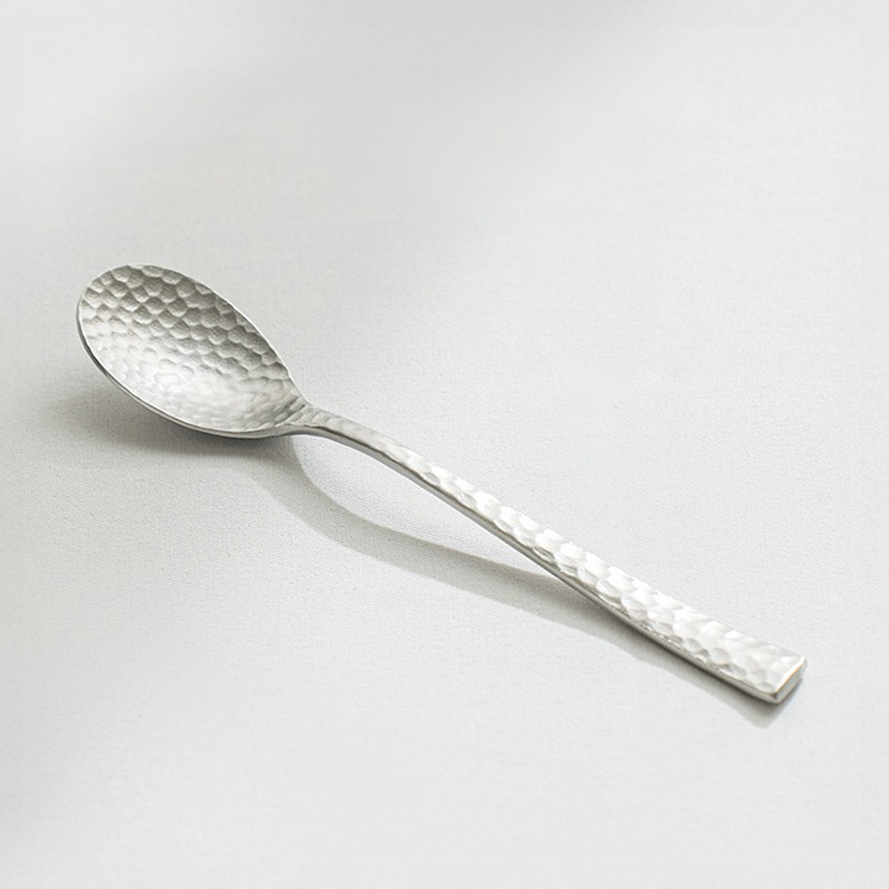 這款餐湯匙在鎚目餐具中相當罕見,連湯匙的凹槽部分都精心打造了鎚目紋理。