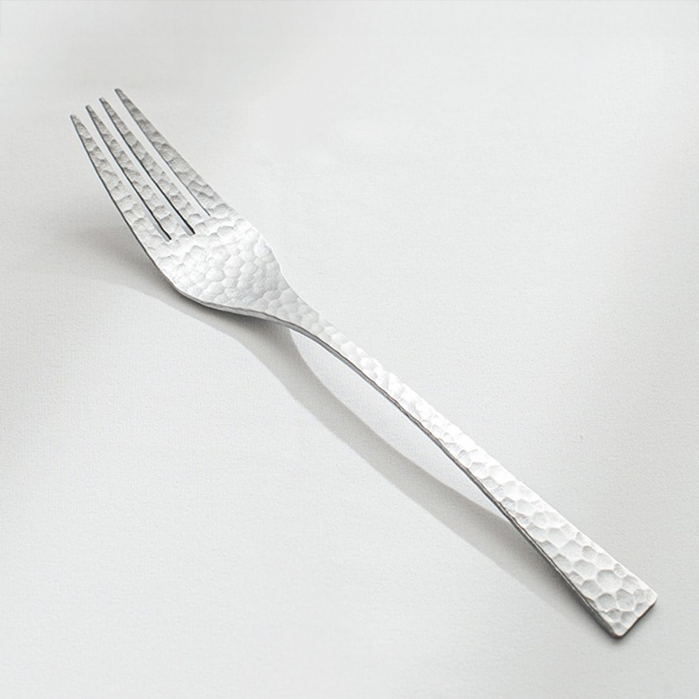 1. 全表面鎚目加工:從正面到背面,從叉尖到柄部均施有鎚目紋理,展現手工質感與高級感,消光質地加上鎚目紋,能有效隱藏使用時產生的刮痕。