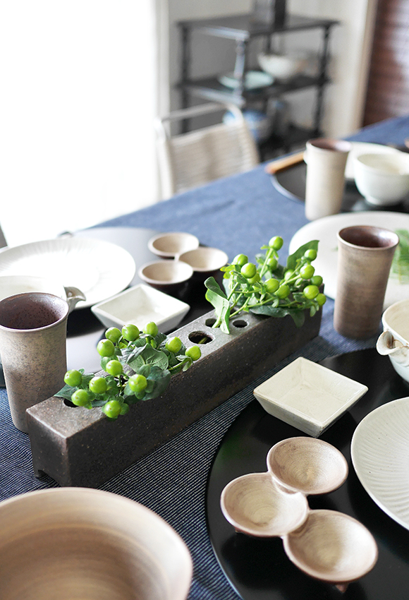 長形圓孔造型花器 /信樂燒 數量