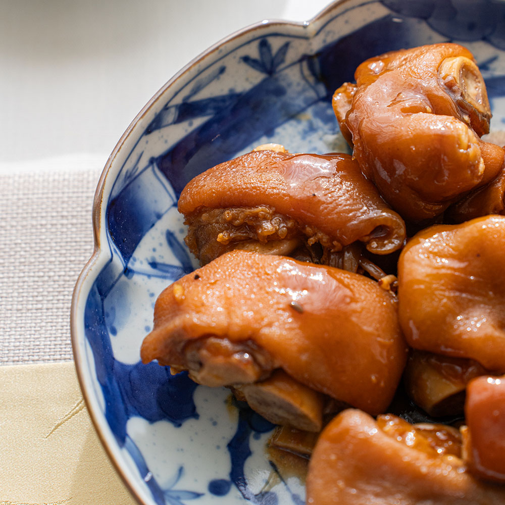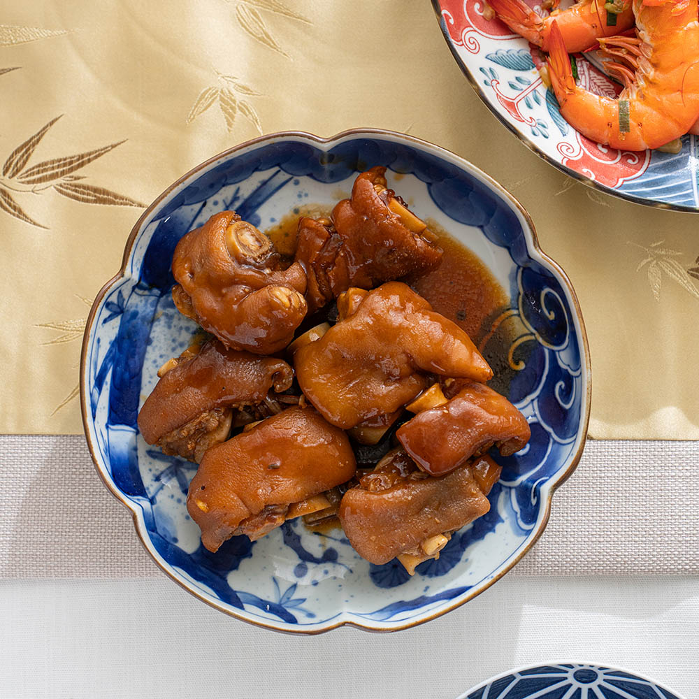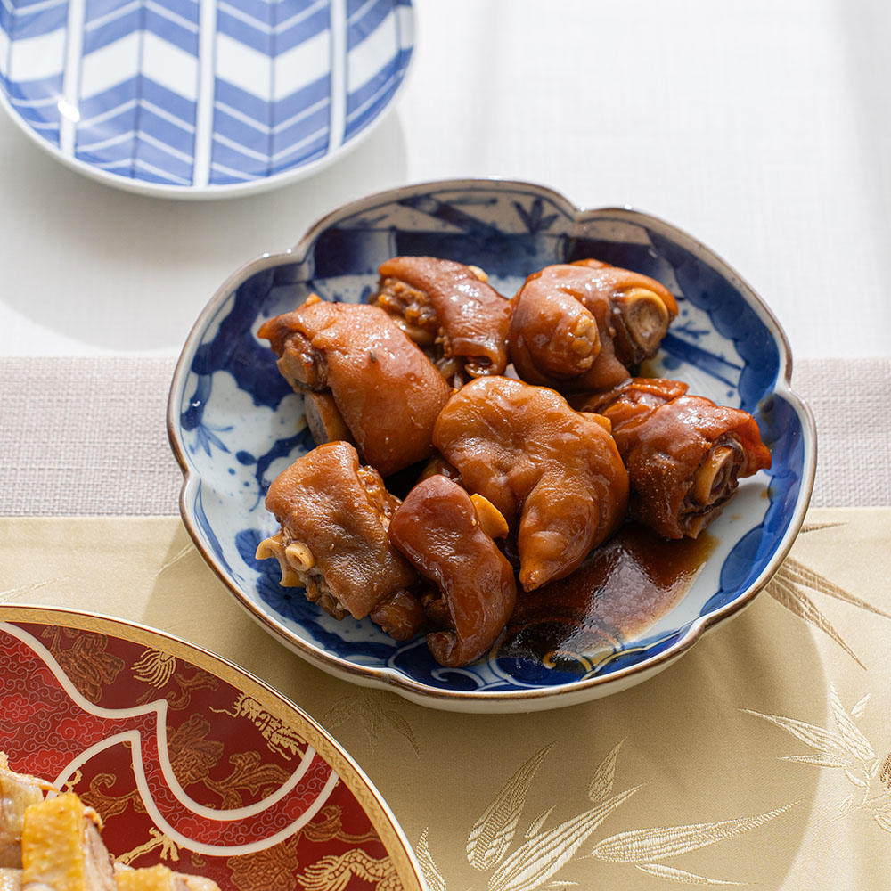 少見的六方花瓣盤型,獨特而優雅,足夠的深度,可盛放燉物等中式湯汁料理,實用度高,也是餐桌上的搶眼的美物。可與各式料理搭配。松竹梅圖紋的設計之美能將料理襯托的更加美味。