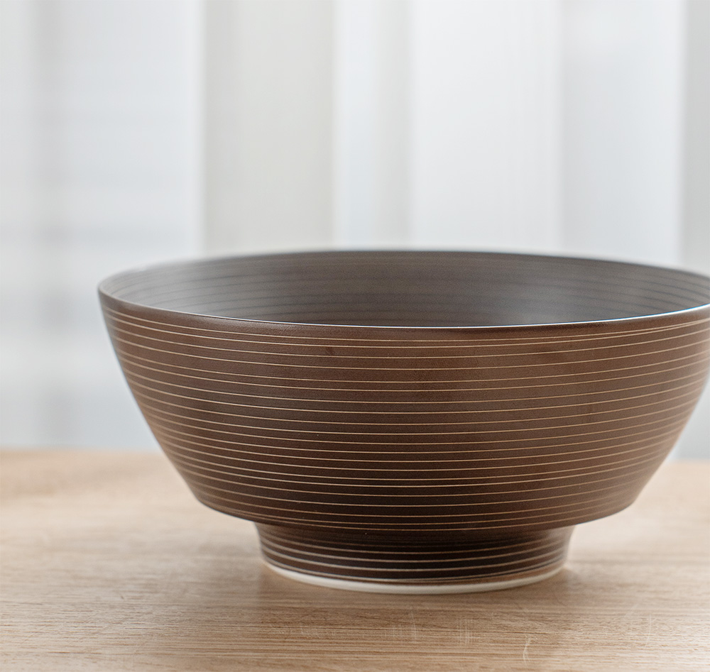 13家窯廠各自運用所擅長的釉藥與繪畫技法,製作出多達130種不同圖案變化的湯麵。是一款為了使用者而精心設計,適合每個家庭成員都能擁有自己專屬圖紋的風格麵碗。
