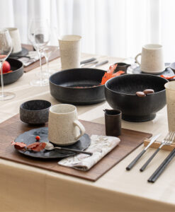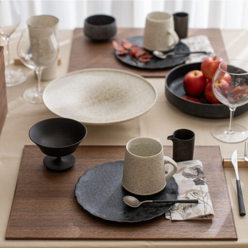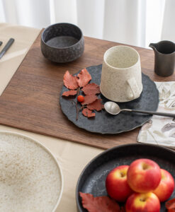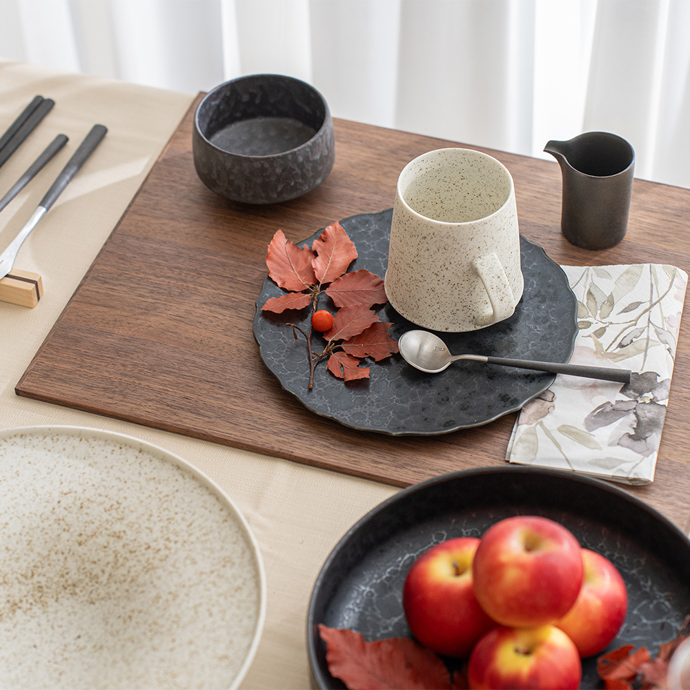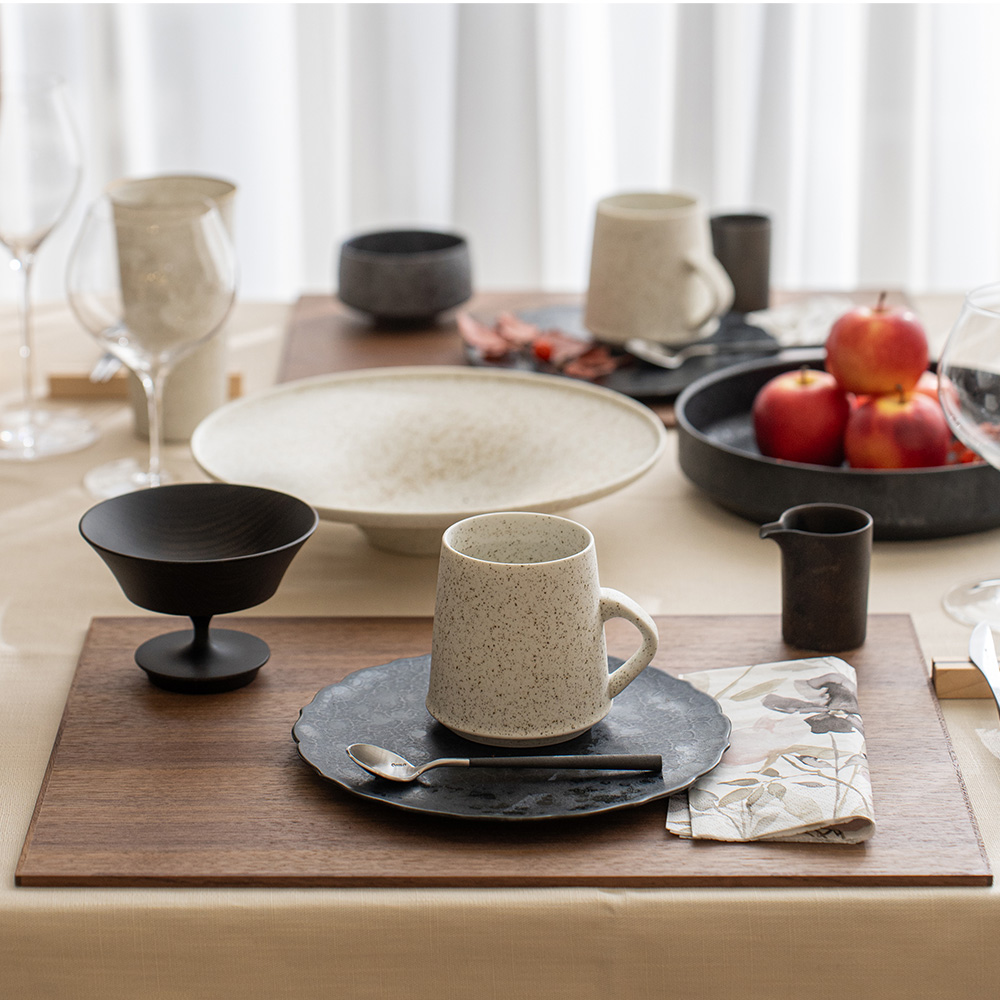 線條俐落、比例恰到好處;平整的盤面設計提升了使用彈性,無論搭配和風或西式餐具皆相得益彰。產品附有以越前和紙製成、帶松葉圖樣的專屬禮盒,質感更升級,也十分適合作為禮品。
