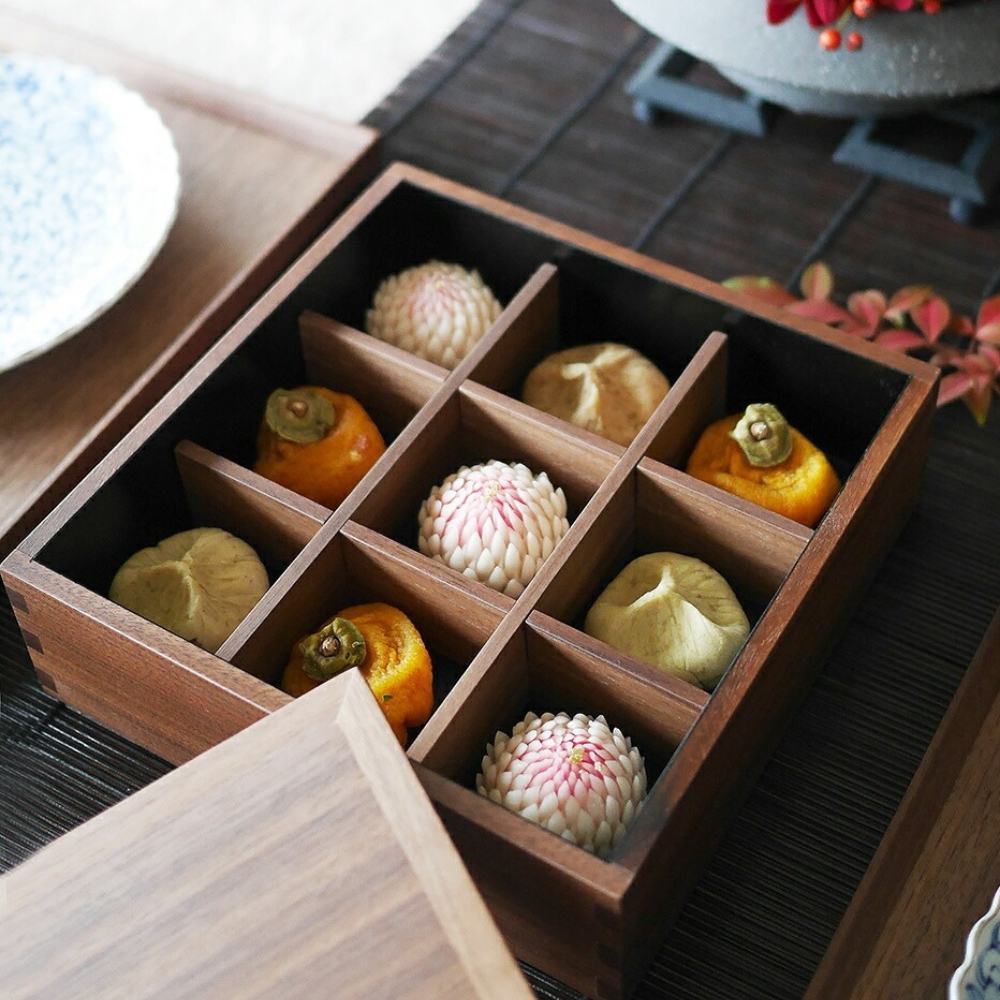 胡桃木 重箱九宮格分隔板 (16.5cm) /松屋漆器/4件組
