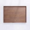 雖然看似平凡,卻是一款在各種場合都能萬用活躍的方形托盤。利用胡桃木自然的木紋,打造出端正雅緻的質感。托盤邊緣約6mm的立體厚度,帶來恰到好處的細膩感,並以楔形接合方式進行加固,同時成為設計上的亮點。