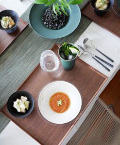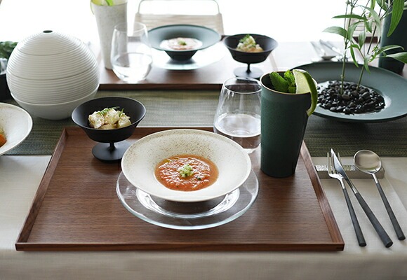 線條俐落、比例恰到好處;平整的盤面設計提升了使用彈性,無論搭配和風或西式餐具皆相得益彰。產品附有以越前和紙製成、帶松葉圖樣的專屬禮盒,質感更升級,也十分適合作為禮品。