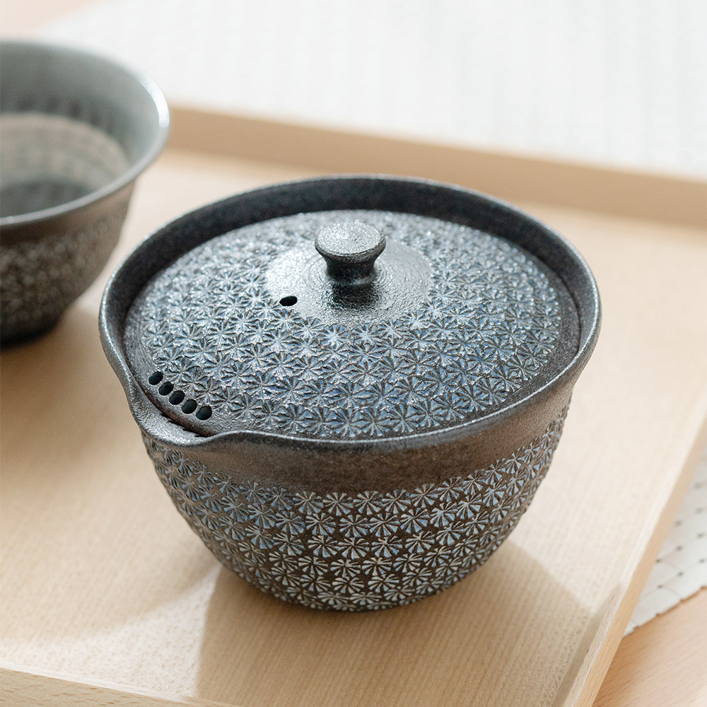 京都名店 西川貞三郎商店(1917年創立)的獨家限定款,三島壓花圖案,將細膩的花朵紋鑲嵌在壺身,用手就能感覺到手作壓紋圖案的凹凸質感,溫暖的手感及壺內的粉引白,是讓人愛不釋手的器皿,值得入手收藏。