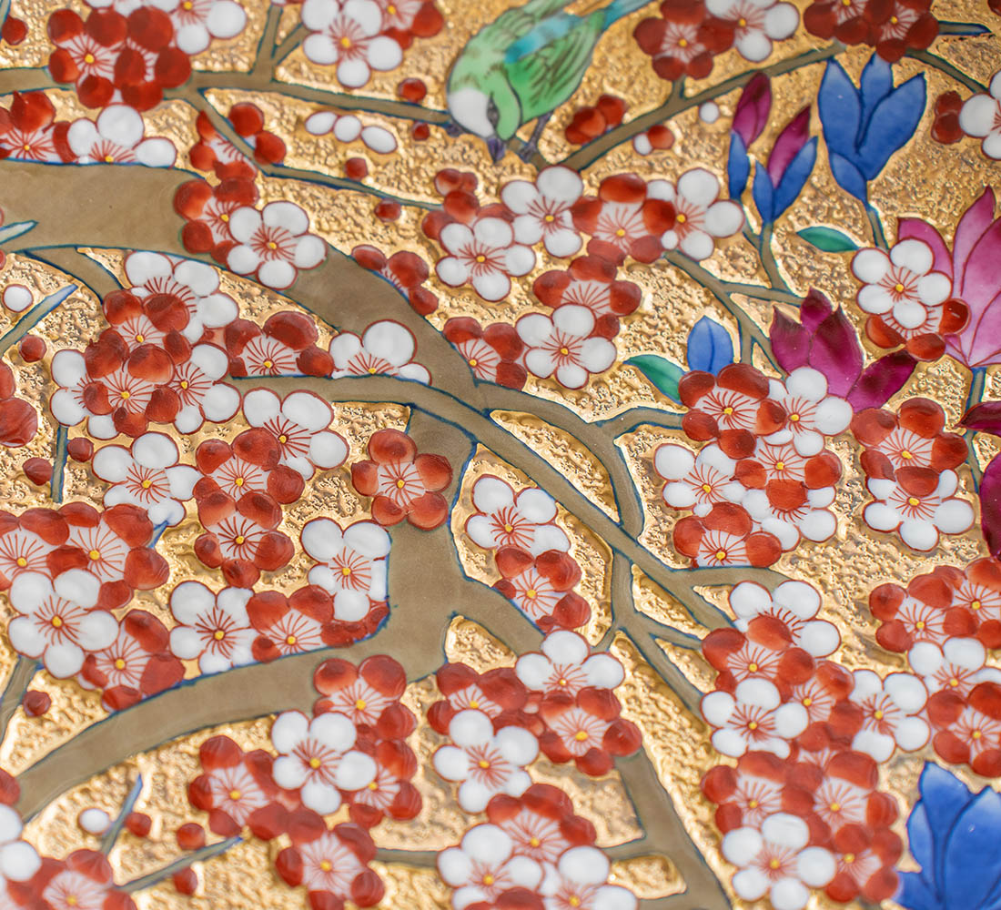 日本國家級傳統工藝士-江口天童擁有妙手丹青的繪畫技巧,呈現的花草鳥林更是栩栩如生!從陶瓷質地到繪畫構圖,皆充滿細膩的設計美感,由他獨家研發的高純度黃金釉彩作品,更是金龍窯的經典系列,是許多忠實者的收藏愛好。