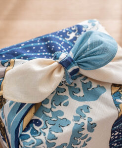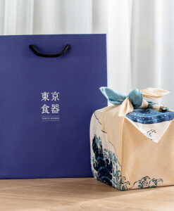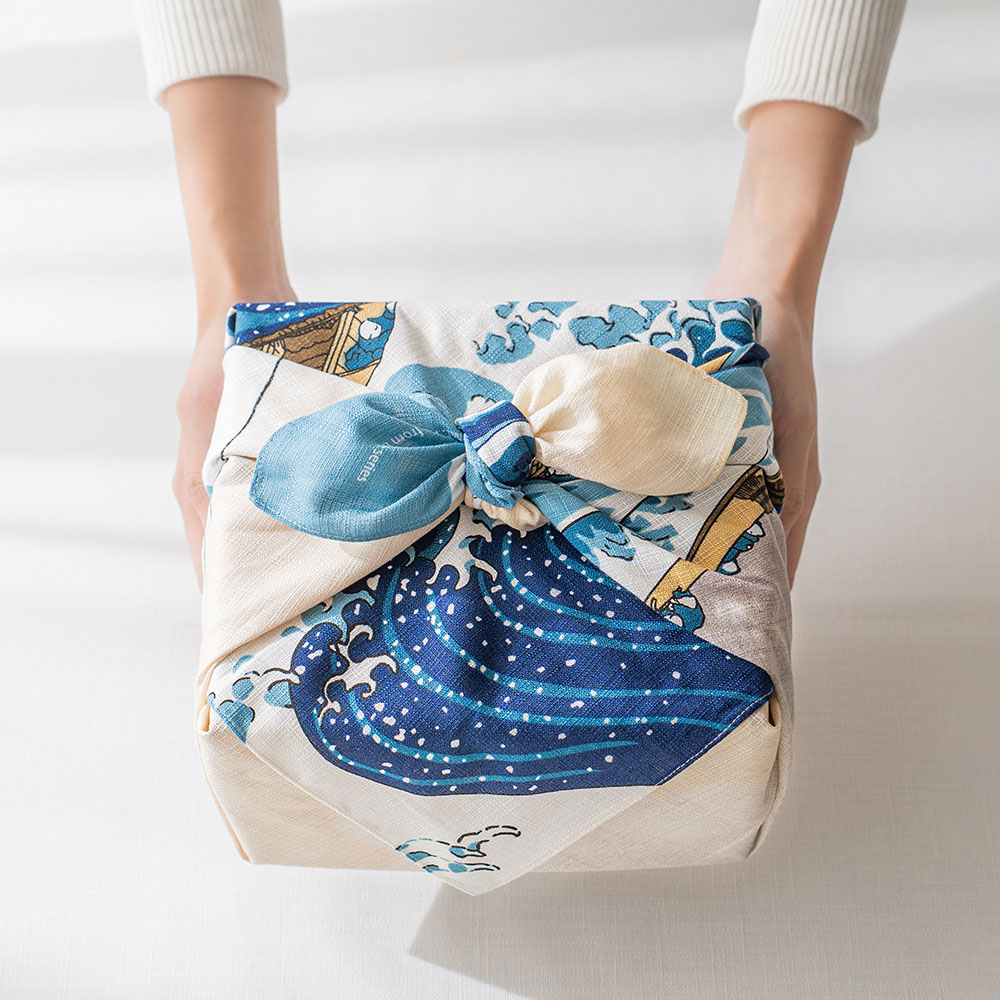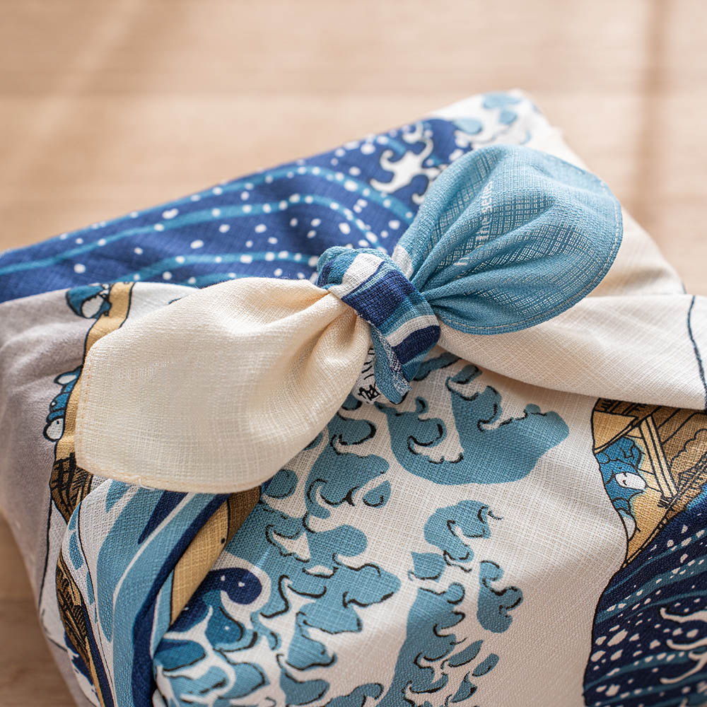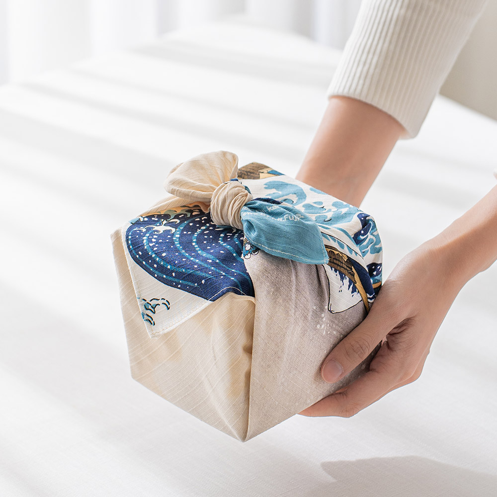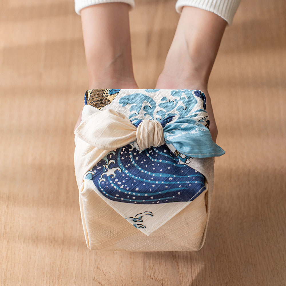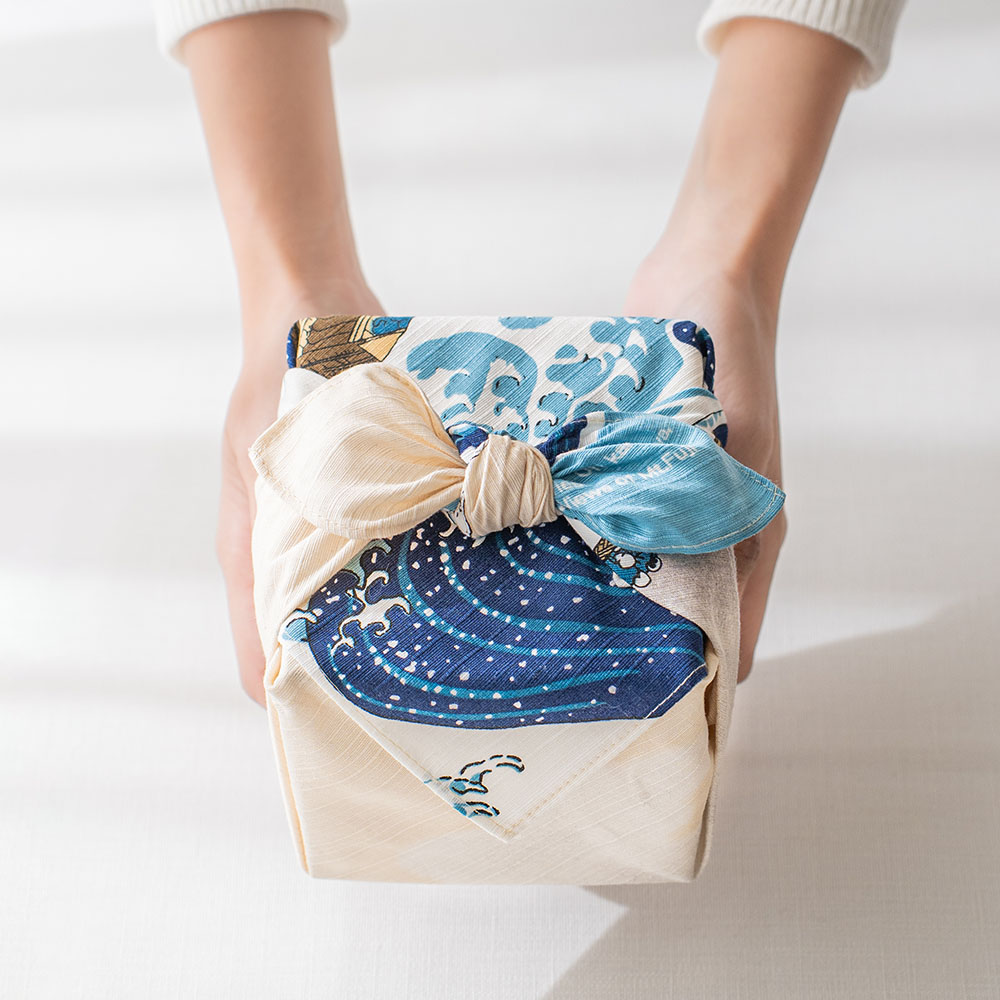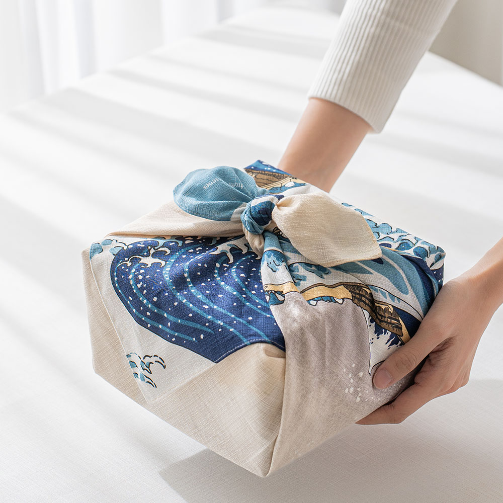 壯麗的構圖中,翻湧的浪濤與靜謐的富士山同時展現出動與靜的美感,這件傑作也曾啟發了歐洲著名音樂家德布西以及畫家梵谷。 做為贈禮包裝,充滿經典日式風情