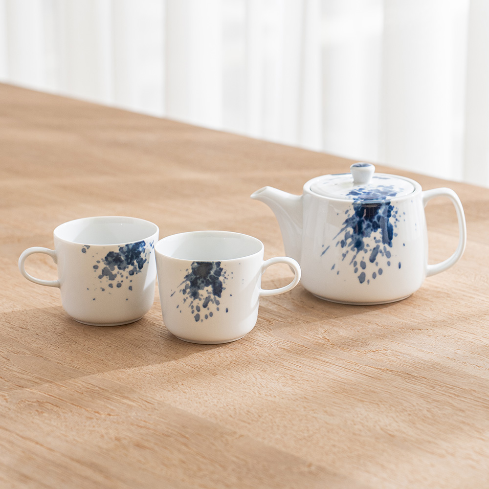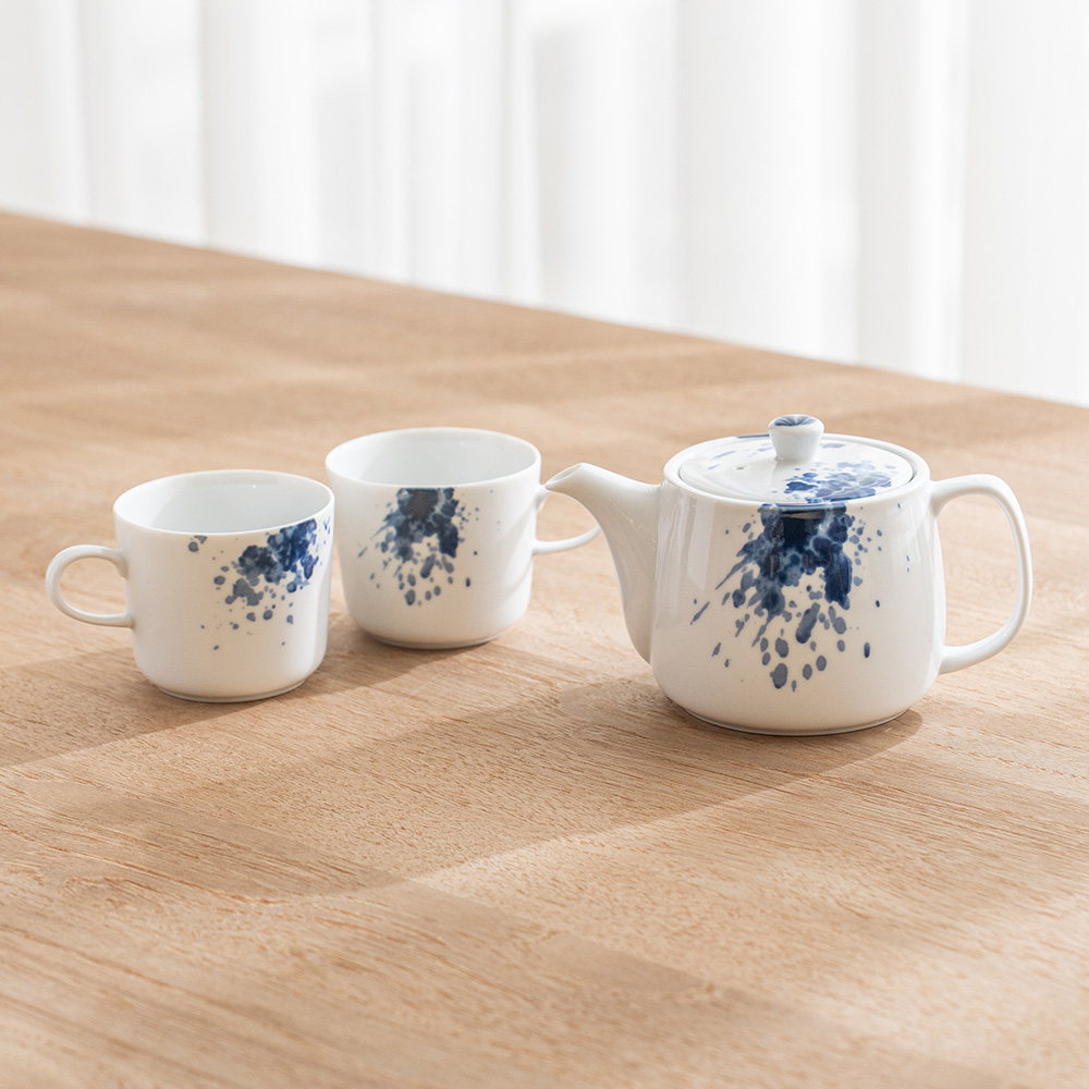 Slope吹墨系列 藍白茶壺 /深山陶器 數量