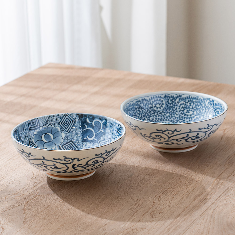 染付唐草拉麵碗 /美濃燒