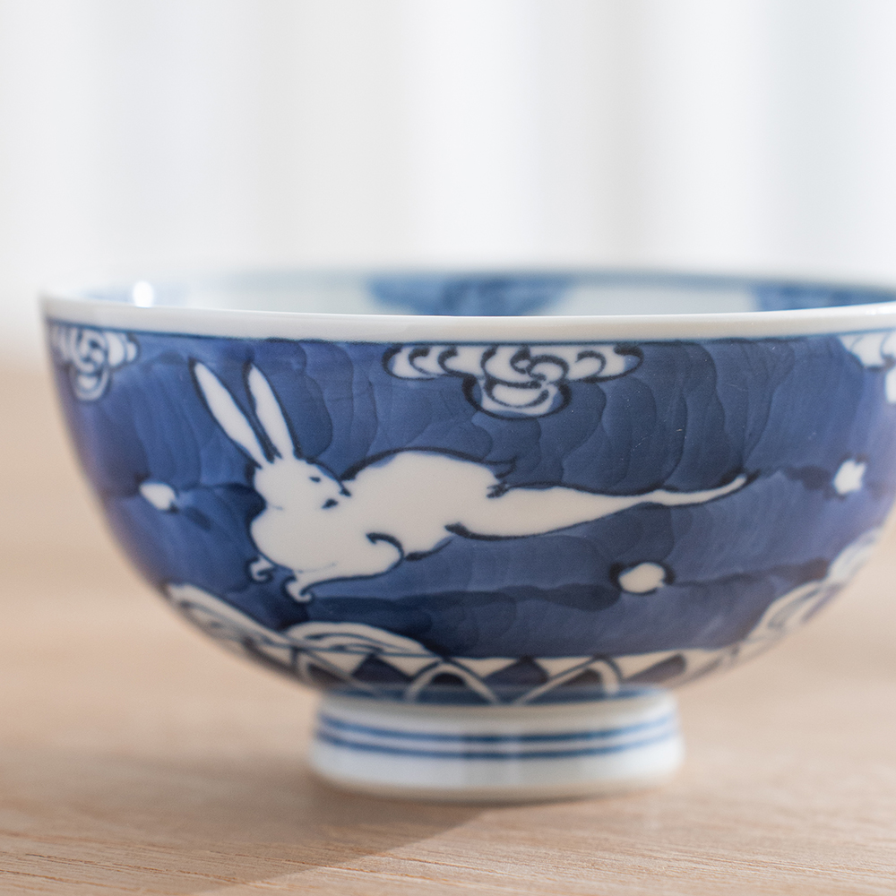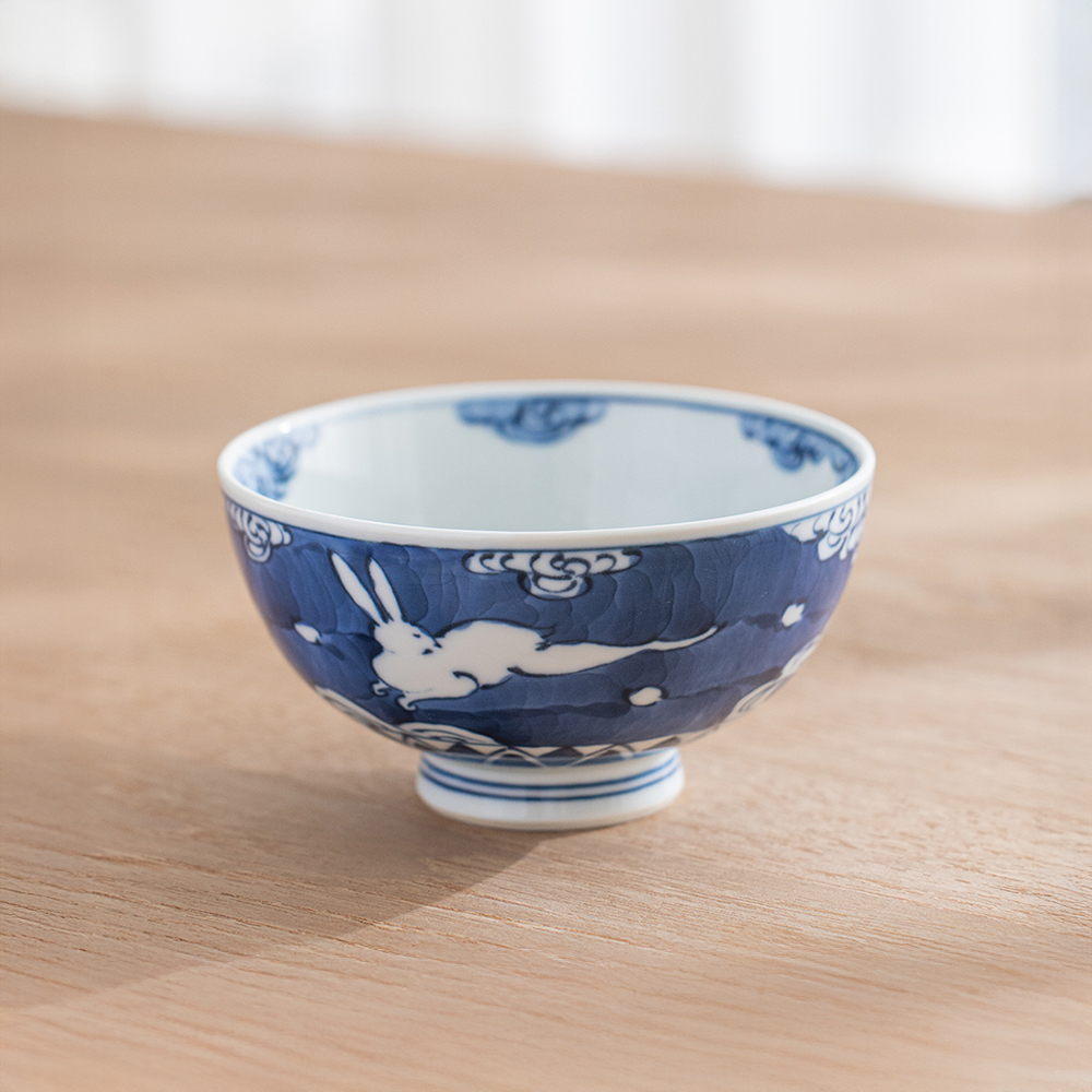 【絕版品】染付波兔 飯碗 /賞美堂