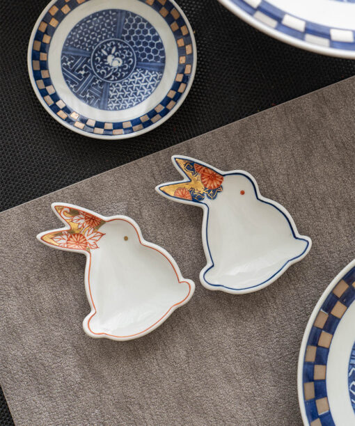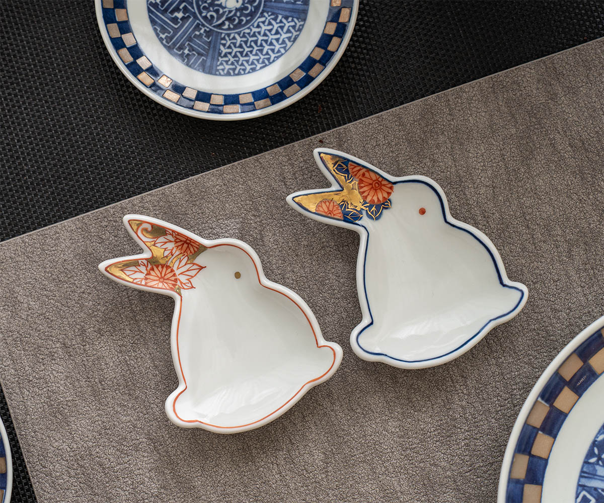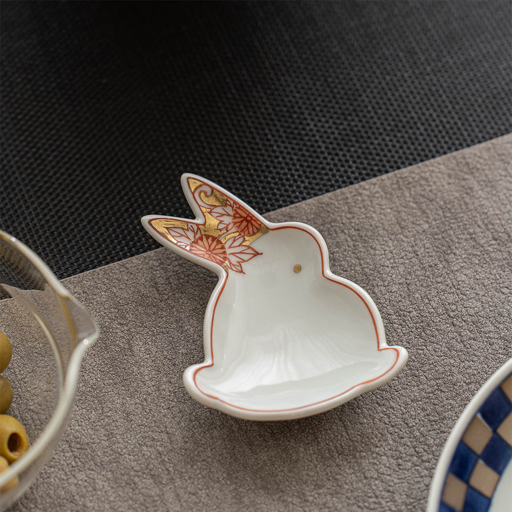 【新春優惠85折】金彩玉兔醬料小碟 紅&藍 /賞美堂/2件組