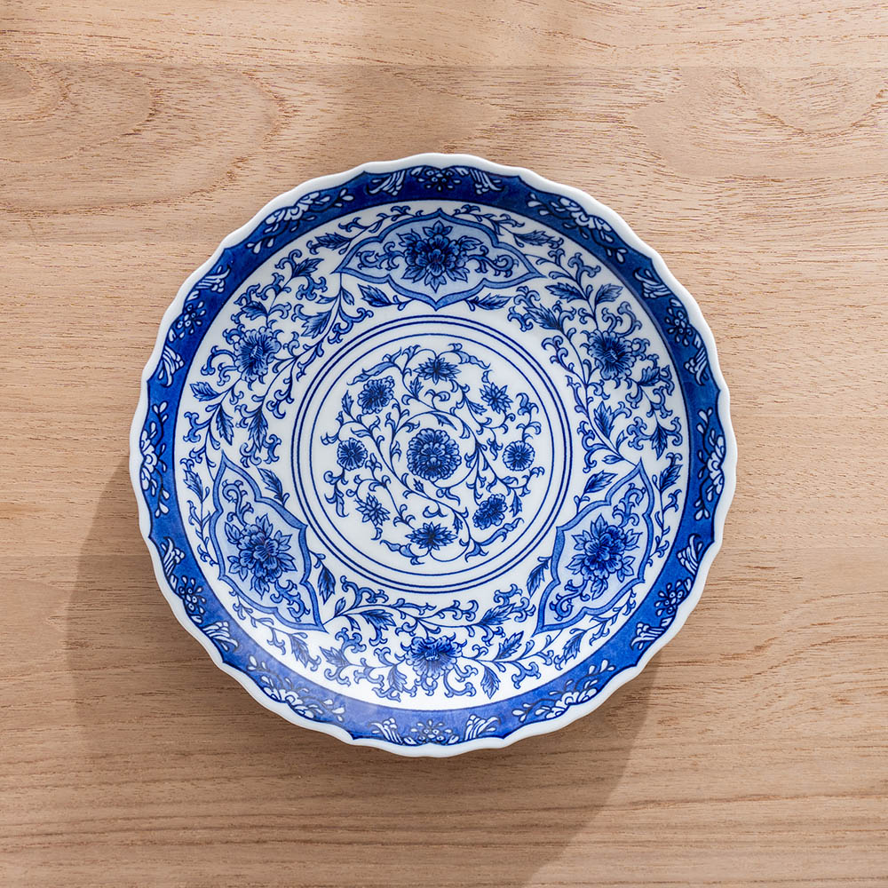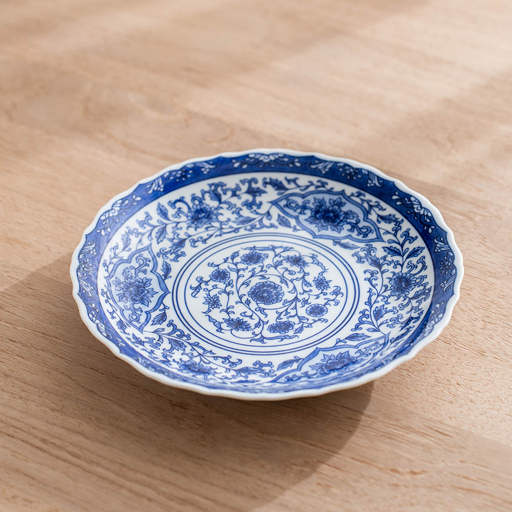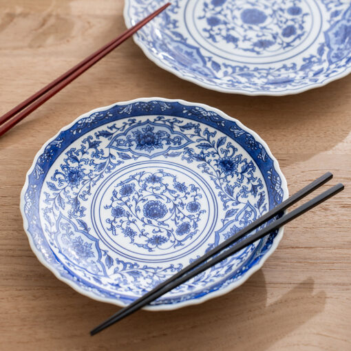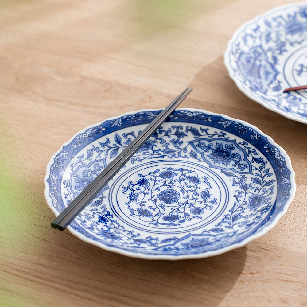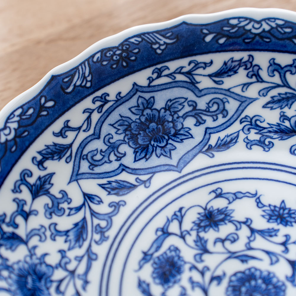 以牡丹、菊、蓮、撫子、玫瑰等花卉為主題,綻放般地灑落於盤面,並以細緻的唐草紋樣柔美串聯——這款染付餐盤呈現雍容典雅的氣質,散發出成熟沉穩的品格之美。無論是與家人共享的日常時光,或是款待賓客的餐桌風景,都象徵著緣分與情感的延續;也是極具吉祥寓意的送禮之選。