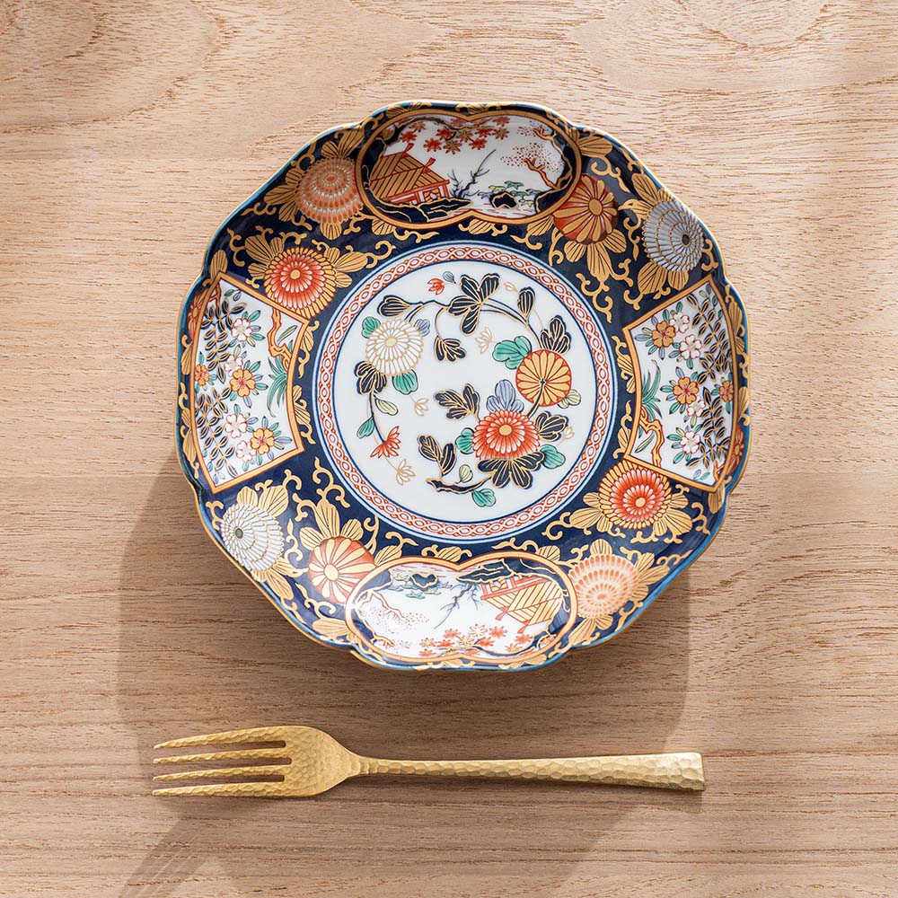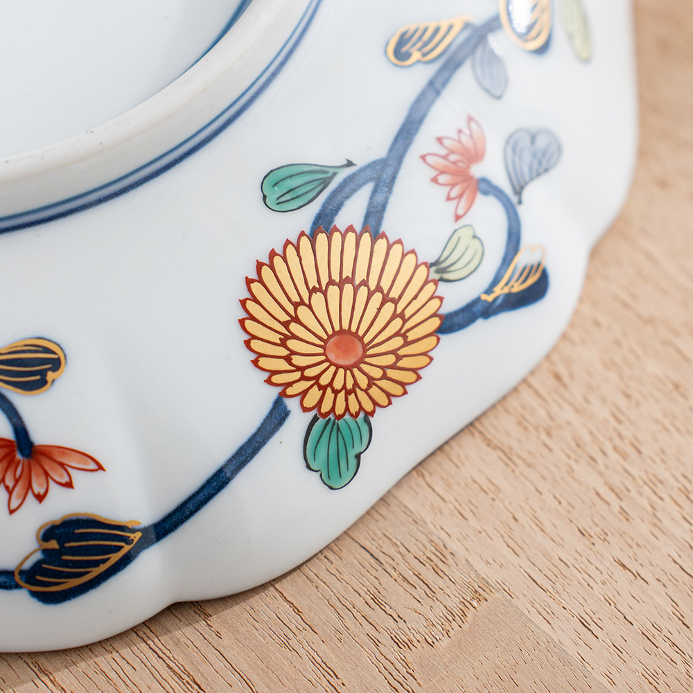 以江戶時代著名繪畫/工藝美術宗師 -尾形光琳的風格為師,華麗的構圖,稱之為琳派古伊萬里紋樣,為百年來日本人最為喜愛的紋樣之一。