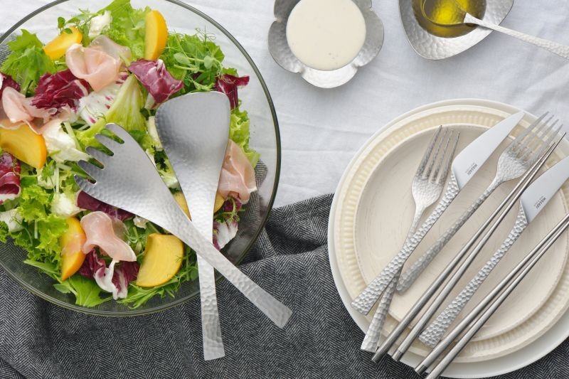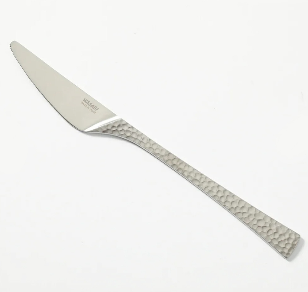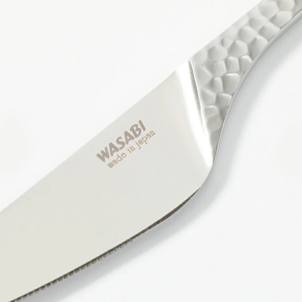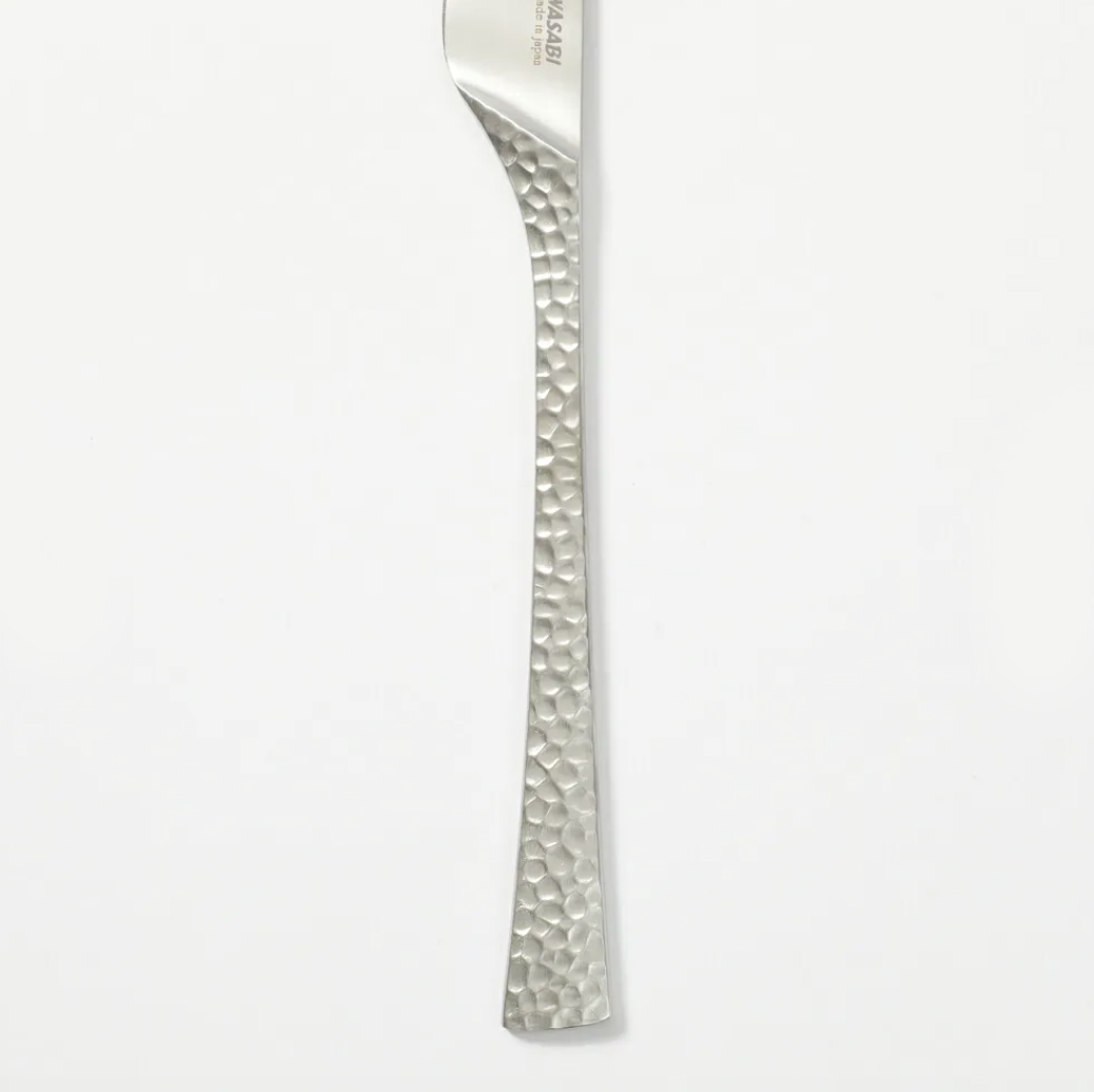 這款 WASABI 鎚目系列餐具,是由日本新潟縣燕市的知名製造商生產,專為結合實用性與美感而設計。產品特色包括: