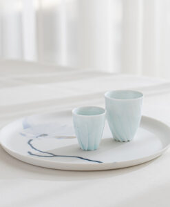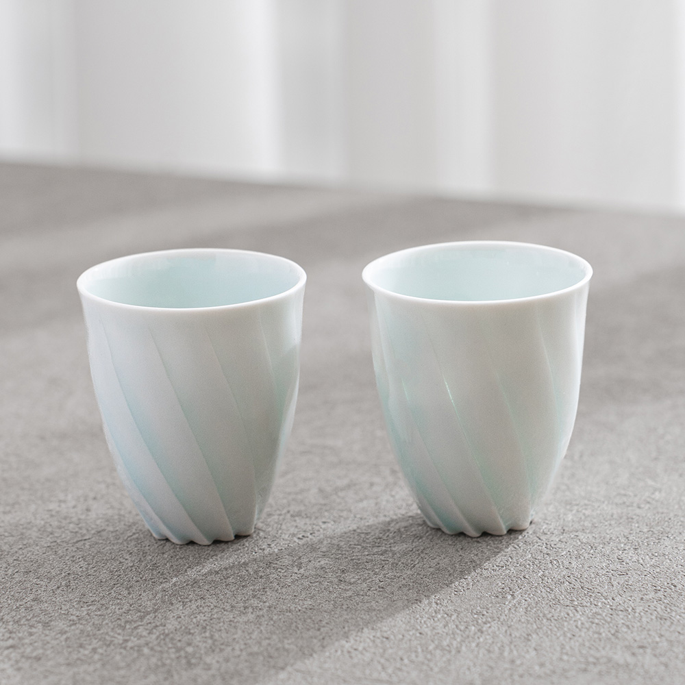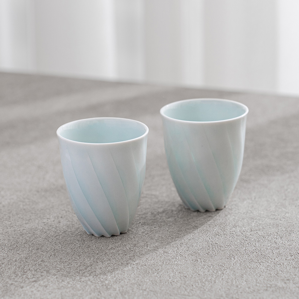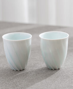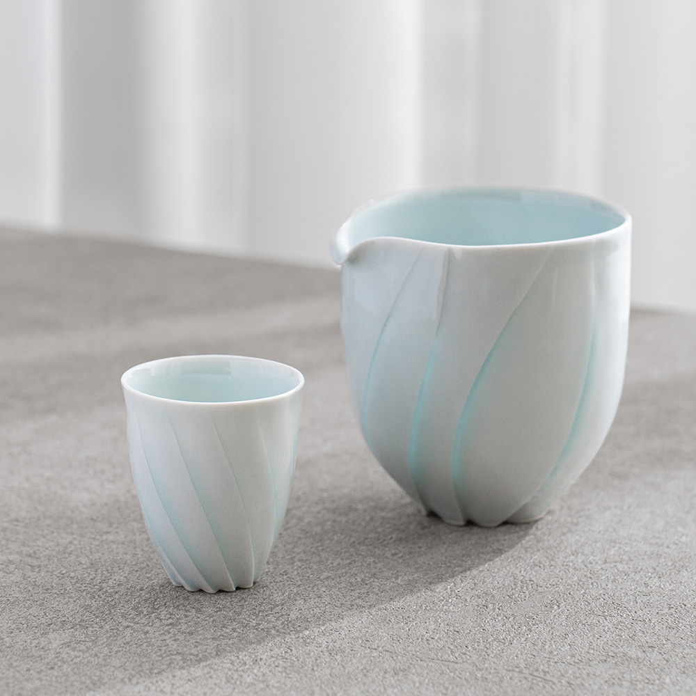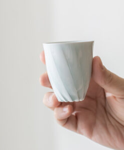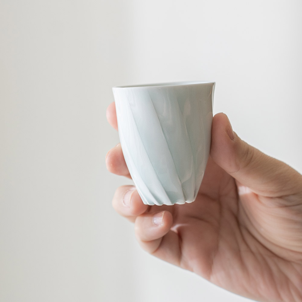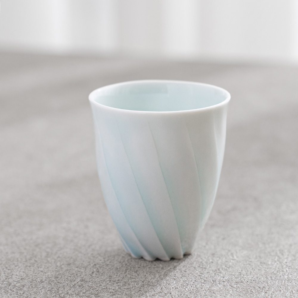 來自日本陶藝家 – 樽田裕史,以「光」為創作核心,透過細緻的雕刻與釉色變化,讓器物呈現出柔和流動的光影層次,作品表面的旋轉紋理,如光線在器身上緩緩纏繞,安靜而富有詩意。