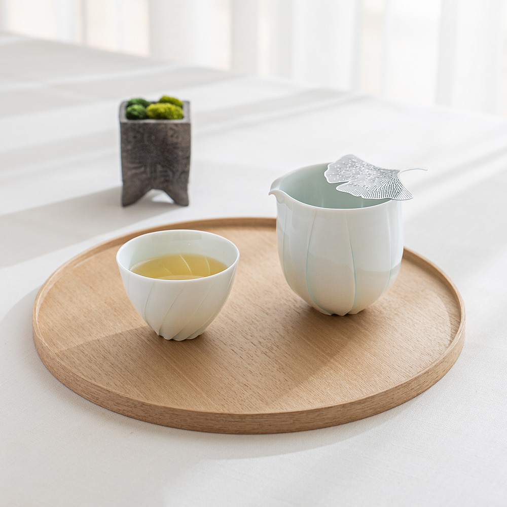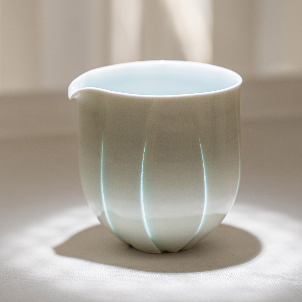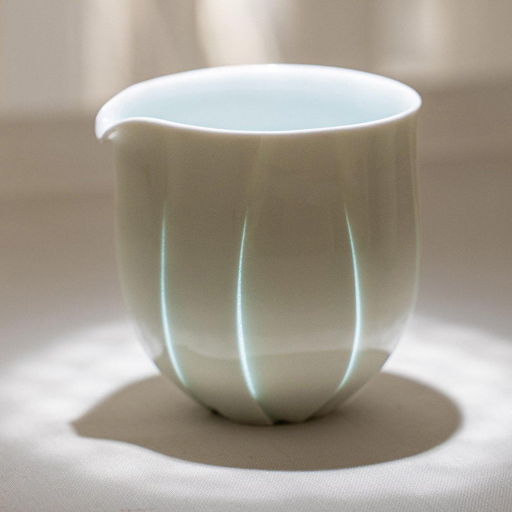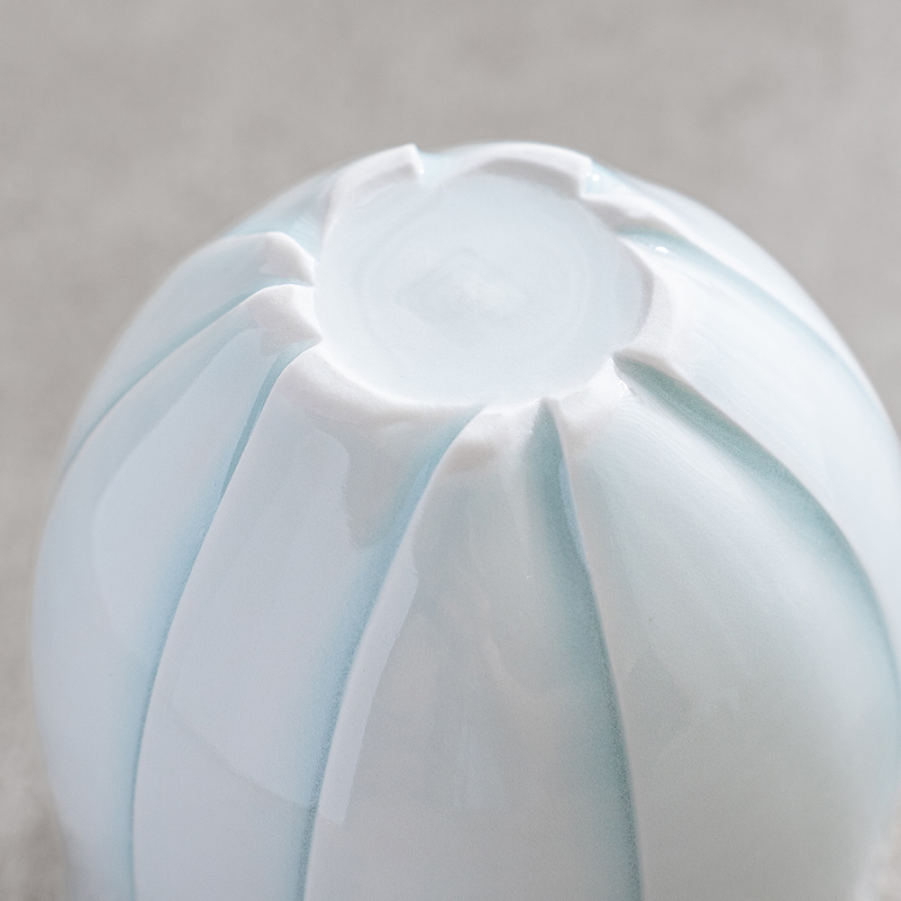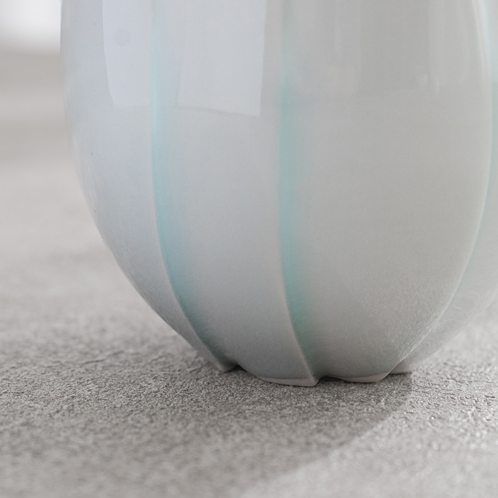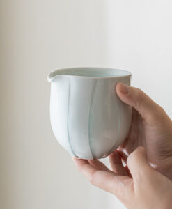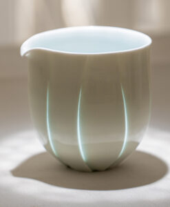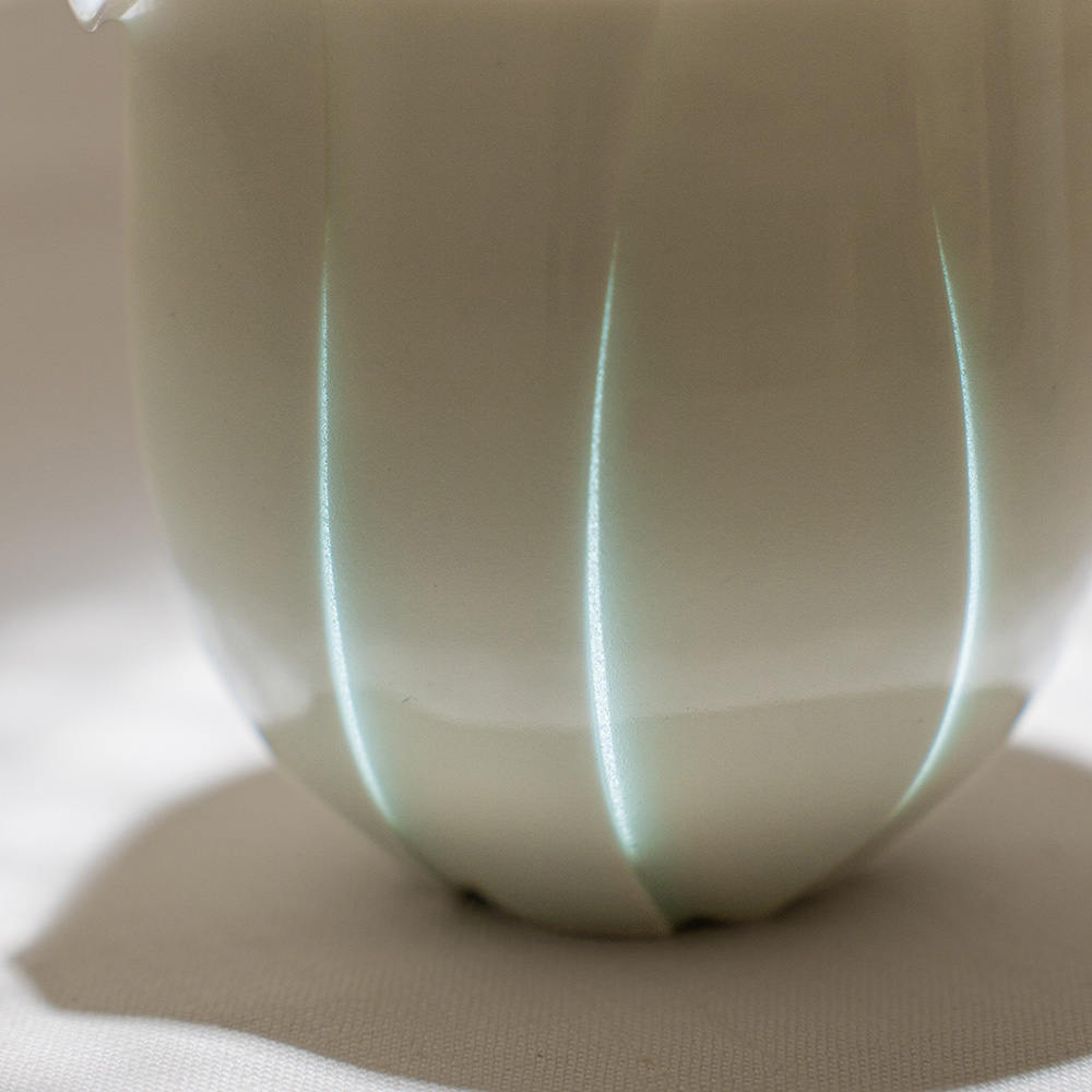 來自日本陶藝家 – 樽田裕史,以「光」為創作核心,透過細緻的雕刻與釉色變化,讓器物呈現出柔和流動的光影層次,作品表面的旋轉紋理,如光線在器身上緩緩纏繞,安靜而富有詩意。