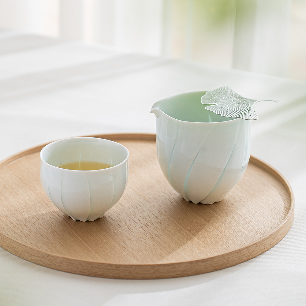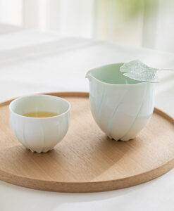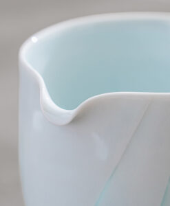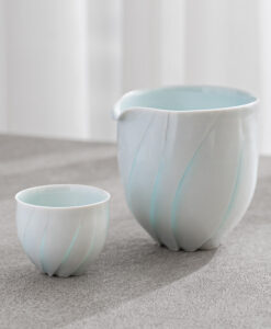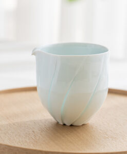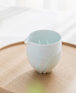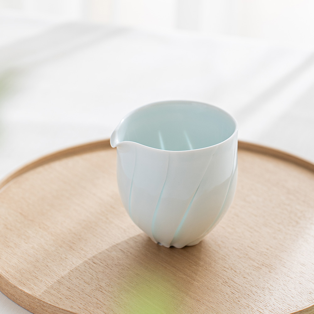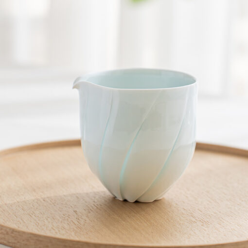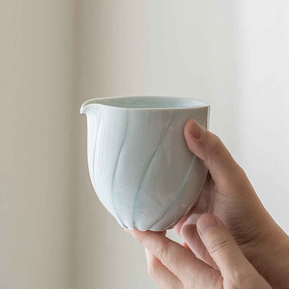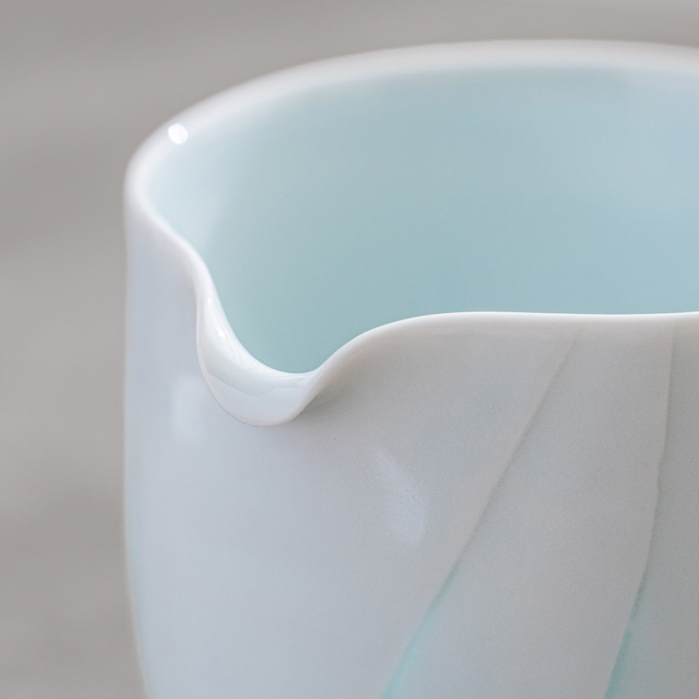 片口設計搭配自然收束的壺口,使倒水動作更加流暢,同時保留手作器皿特有的柔和不規則感,輕盈的觸感與優雅的弧度搭配淡雅的青白色釉色與溫潤質地,讓整體呈現安定而純粹的美感。