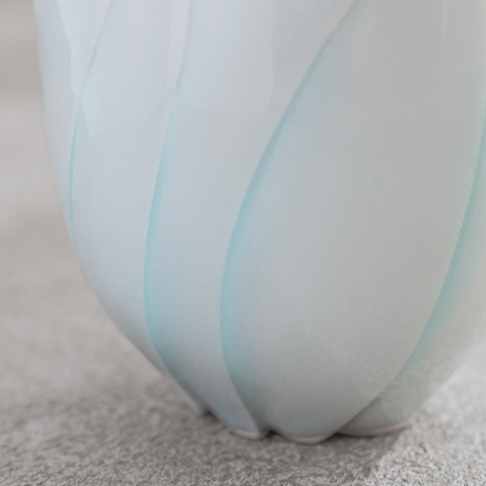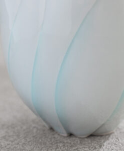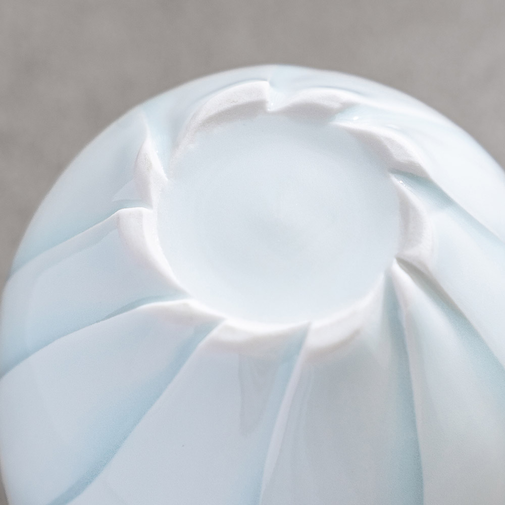 來自日本陶藝家 – 樽田裕史,以「光」為創作核心,透過細緻的雕刻與釉色變化,讓器物呈現出柔和流動的光影層次,作品表面的旋轉紋理,如光線在器身上緩緩纏繞,安靜而富有詩意。