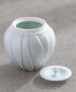 來自日本陶藝家 – 樽田裕史,以「光」為創作核心,透過細緻的雕刻與釉色變化,讓器物呈現出柔和流動的光影層次,作品表面的旋轉紋理,如光線在器身上緩緩纏繞,安靜而富有詩意。