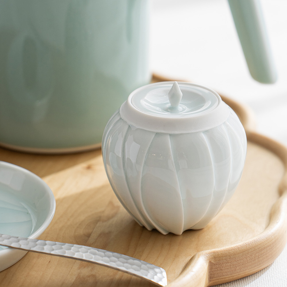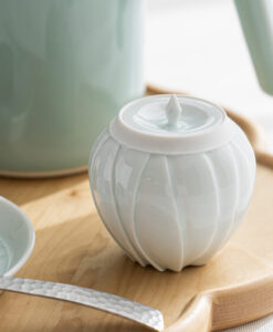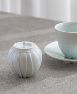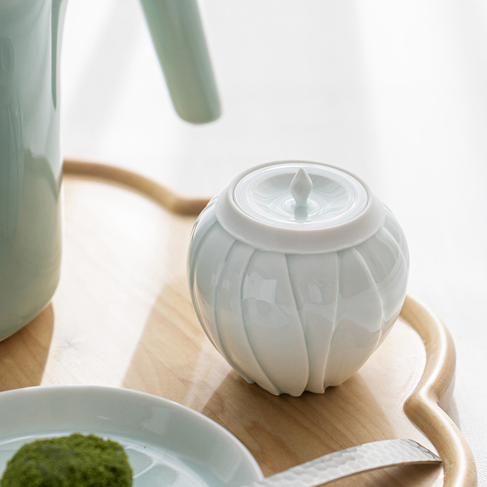 蓋物設計讓器物多了一份實用性,可作為茶葉、糖或小點心的收納,也適合作為茶席中的點心器使用。開闔之間,不只是取用,更像是一種日常裡的微小儀式。