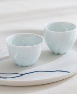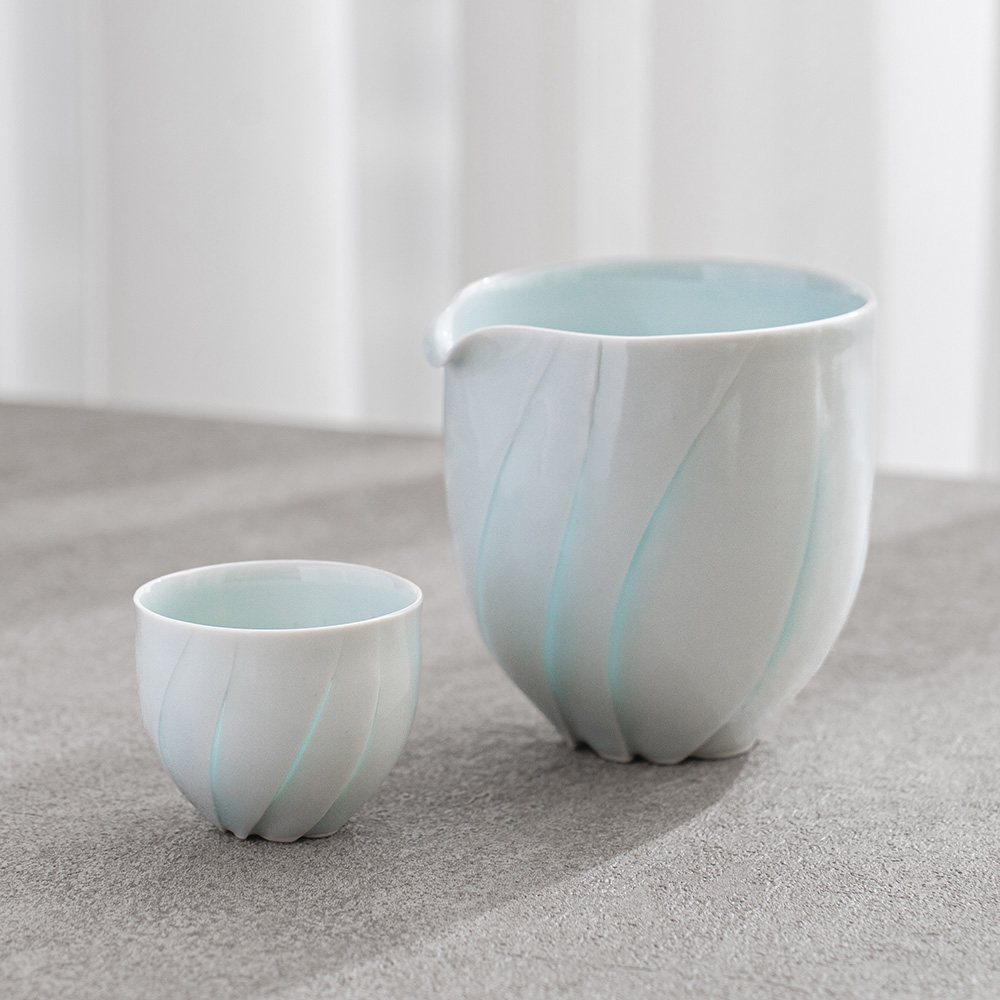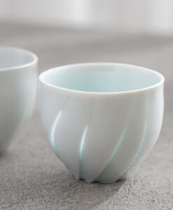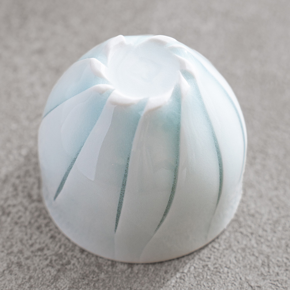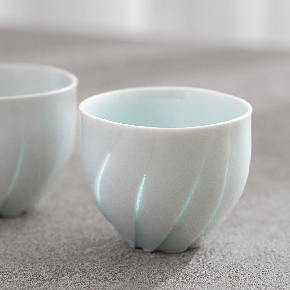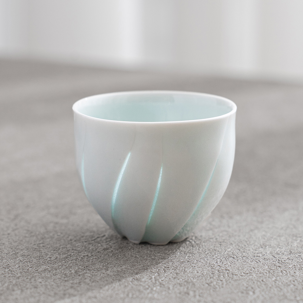 來自日本陶藝家 – 樽田裕史,以「光」為創作核心,透過細緻的雕刻與釉色變化,讓器物呈現出柔和流動的光影層次,作品表面的旋轉紋理,如光線在器身上緩緩纏繞,安靜而富有詩意。
