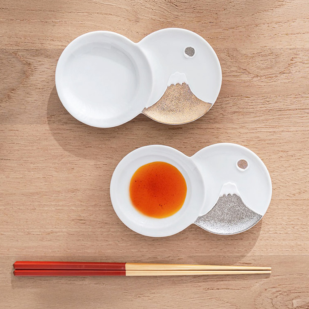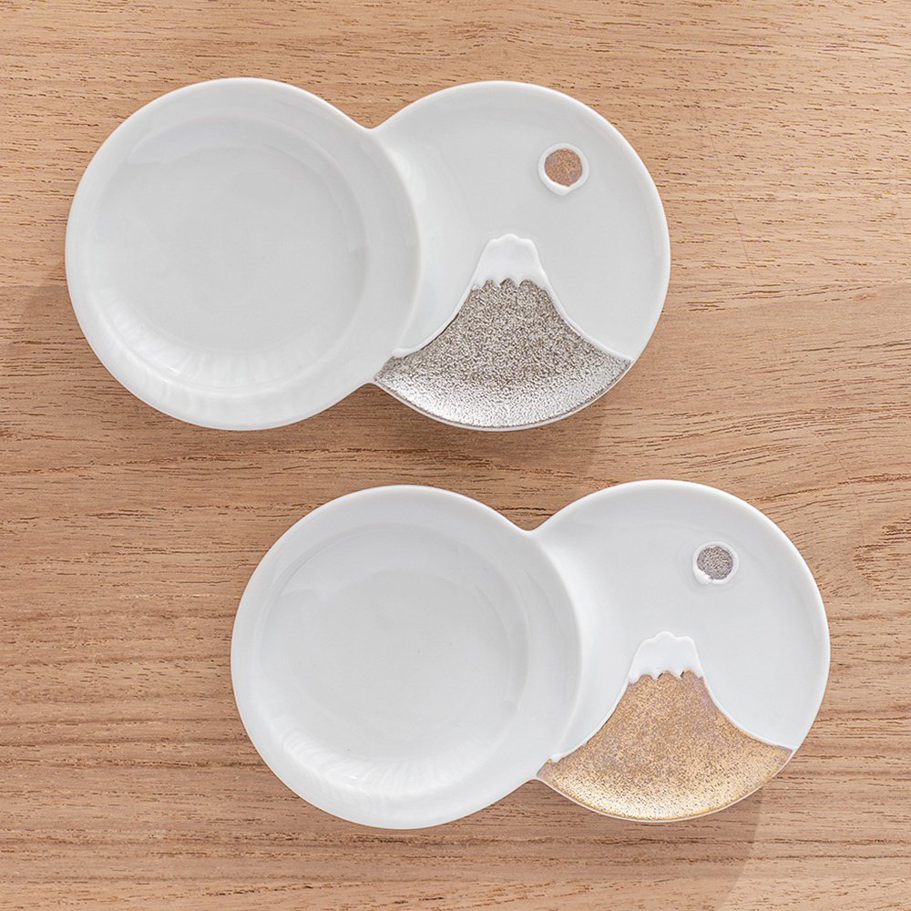 【人氣組合9折優惠組】富士山 二連豆皿組合 金&銀