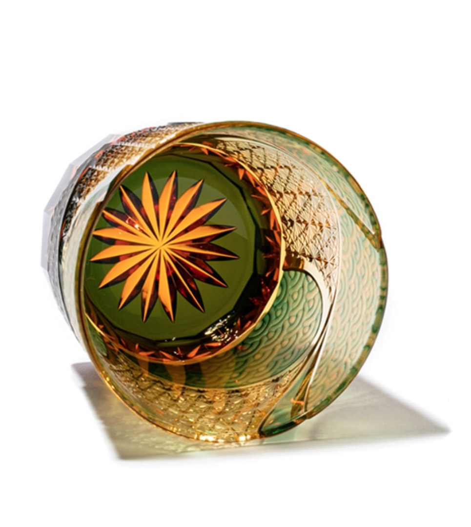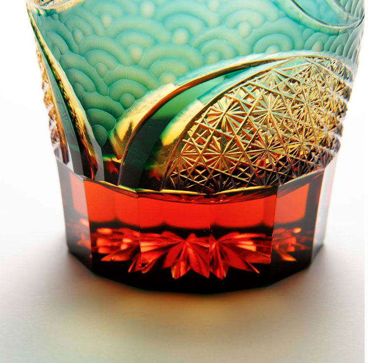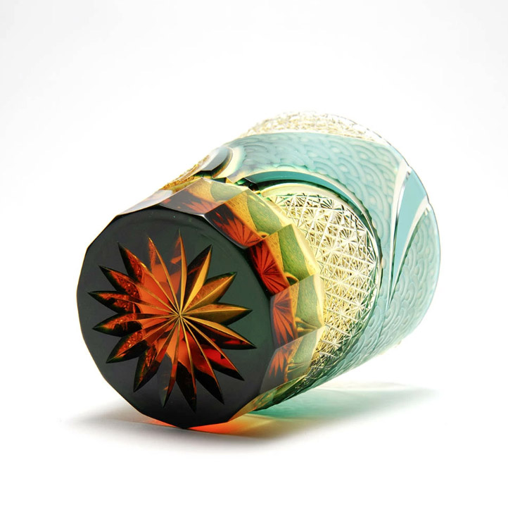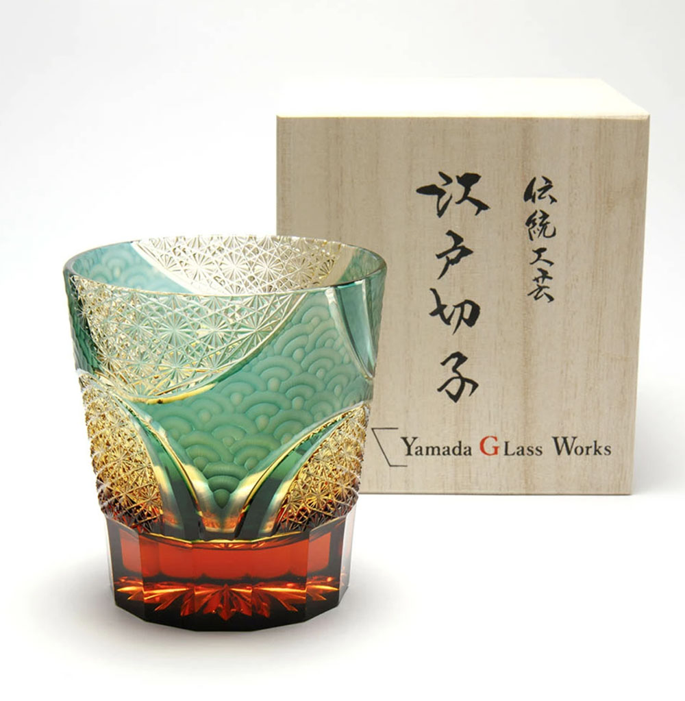 位於東京墨田區,是已傳承三代有著80年歷史的切子工房。從以往大廠下單製作的許多商品中獲得經驗,累積出切割細緻玻璃的高度技術。山田硝子作品的魅力,在於其獨特的設計感。以細緻線條切割出傳統的「菊繋紋」及「八角籠目紋」,搭配不同顏色的「混色玻璃」設計,或搭配花切子技法的花鳥山水紋樣,打破一般江戶切子的傳統印象。這種絕妙搭配不同技法,不同色彩,或不同紋樣的江戶切子造型玻璃杯,其美感及纖細感,讓作品多了現代摩登感及也更年輕化。