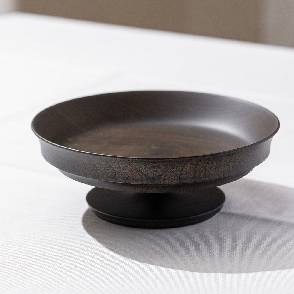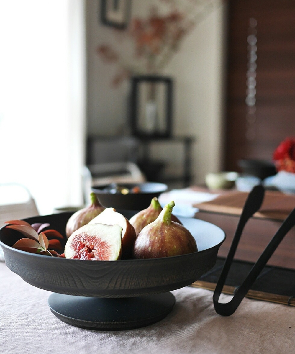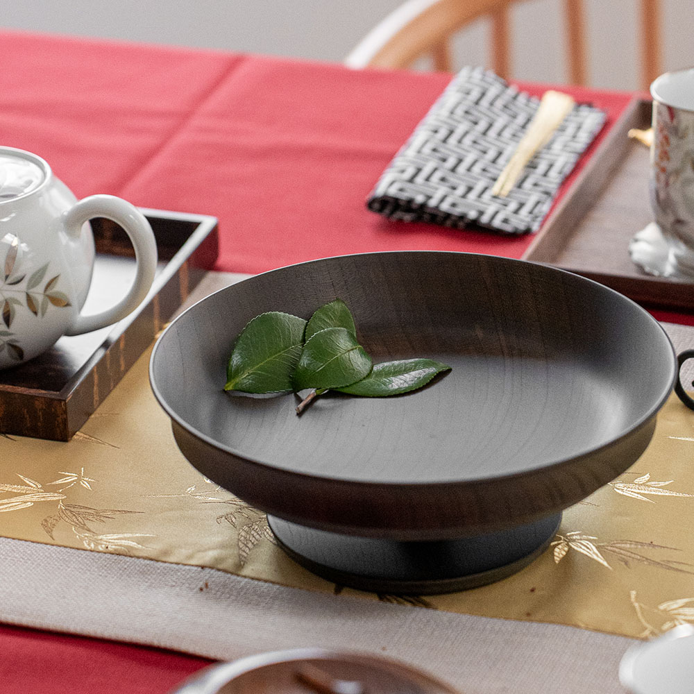 來自日本「我戸幹男商店」出品的 Sinafu 系列高腳缽,使用日本優質的欅木製成,欅木以其堅固耐用和美麗多變的木紋而聞名,並運用山中漆器傳統「木旋」技術,由經驗豐富職人手工製成,這種技術能將木材削得極薄,使成品非常輕巧,表面採用「拭漆」工藝,將生漆反覆擦拭滲透進木材紋理中,呈現出深邃的黑色外觀,同時保留並突顯了欅木天然、獨特的紋理與質感,隨著時光流轉,光澤愈發溫潤迷人。