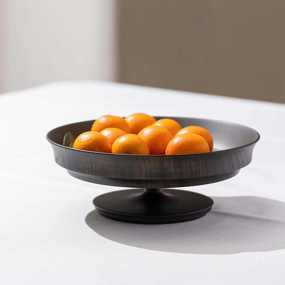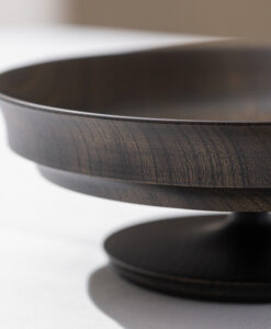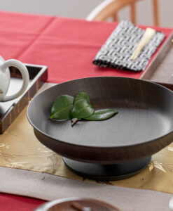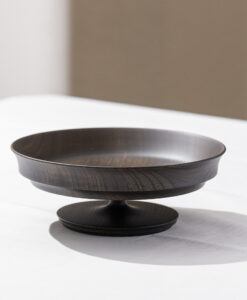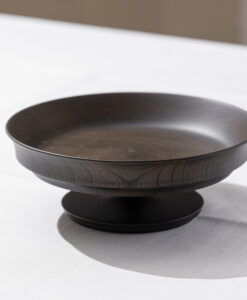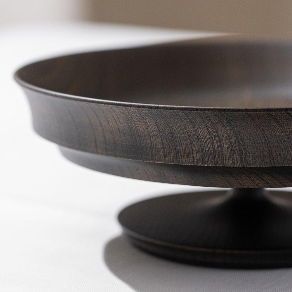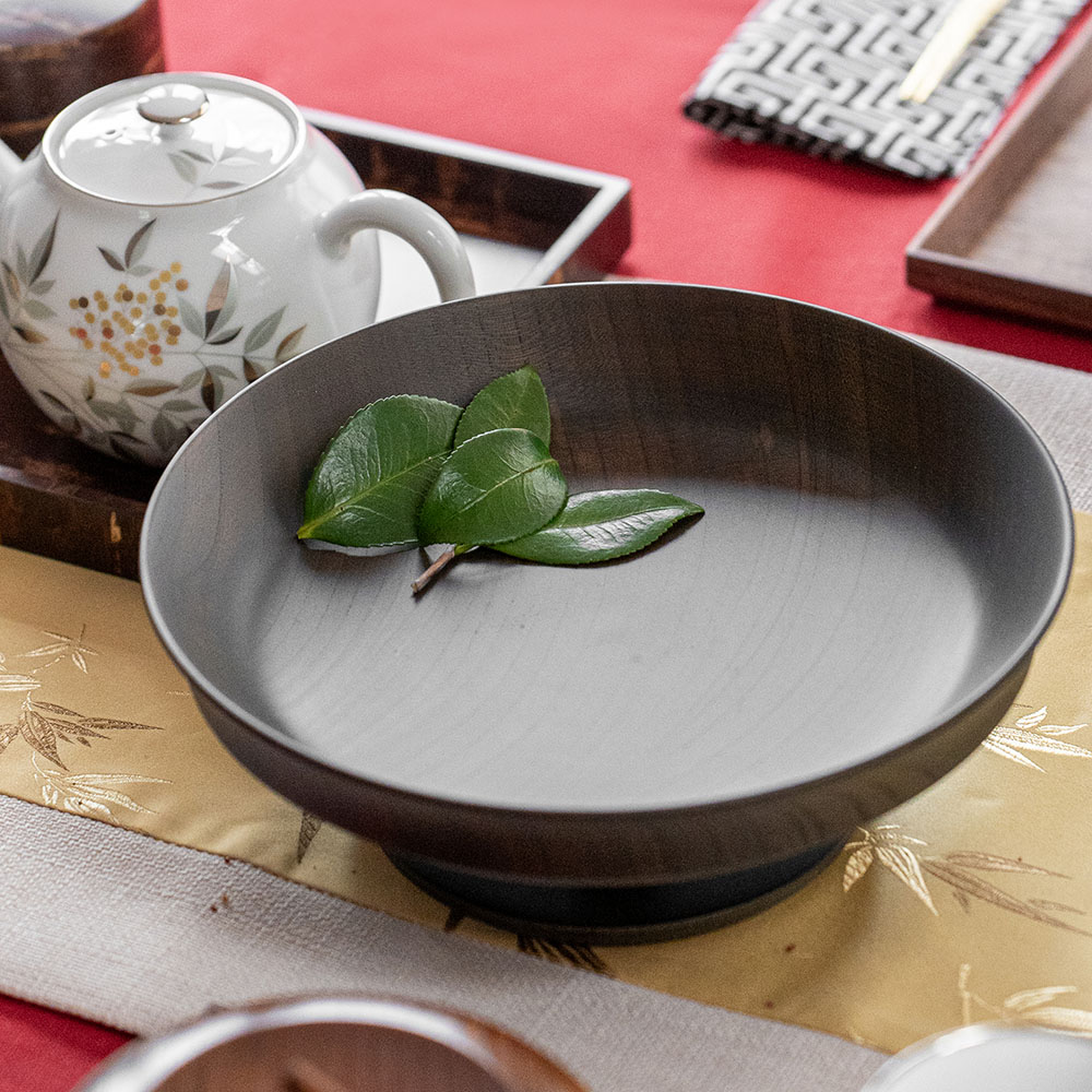 來自日本「我戸幹男商店」出品的 Sinafu 系列高腳缽,使用日本優質的欅木製成,欅木以其堅固耐用和美麗多變的木紋而聞名,並運用山中漆器傳統「木旋」技術,由經驗豐富職人手工製成,這種技術能將木材削得極薄,使成品非常輕巧,表面採用「拭漆」工藝,將生漆反覆擦拭滲透進木材紋理中,呈現出深邃的黑色外觀,同時保留並突顯了欅木天然、獨特的紋理與質感,隨著時光流轉,光澤愈發溫潤迷人。