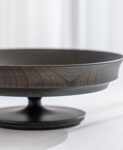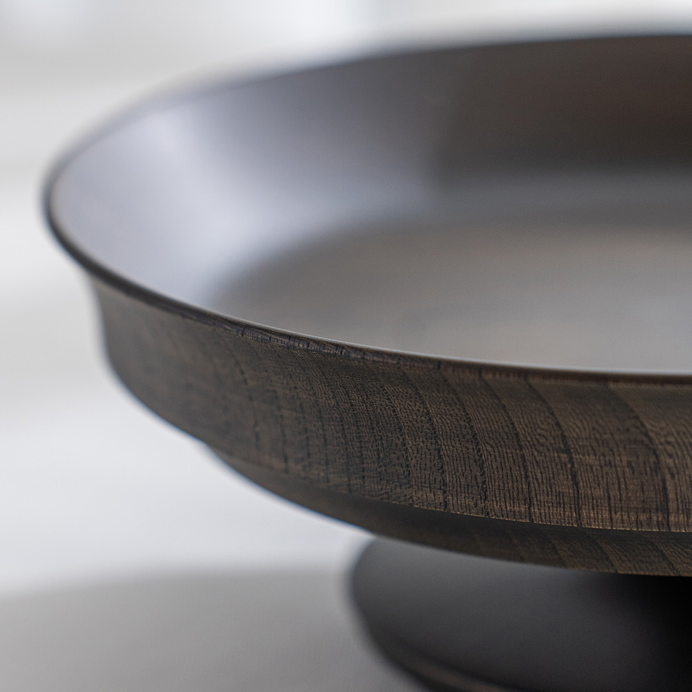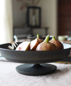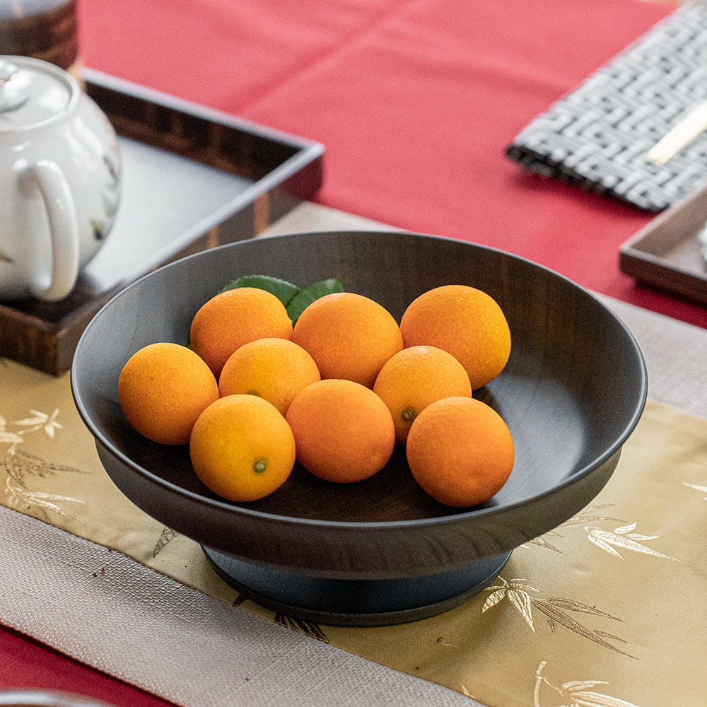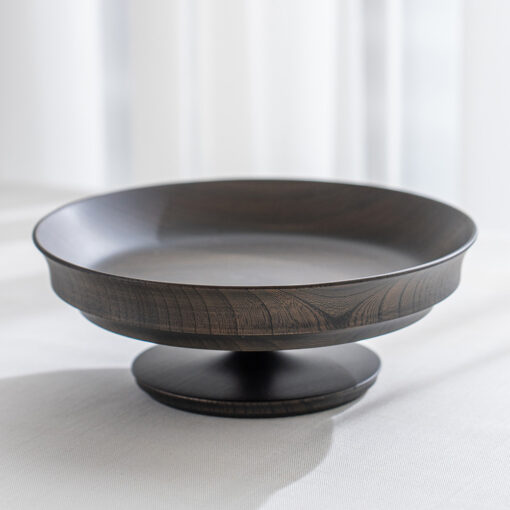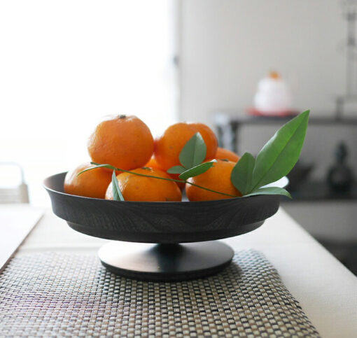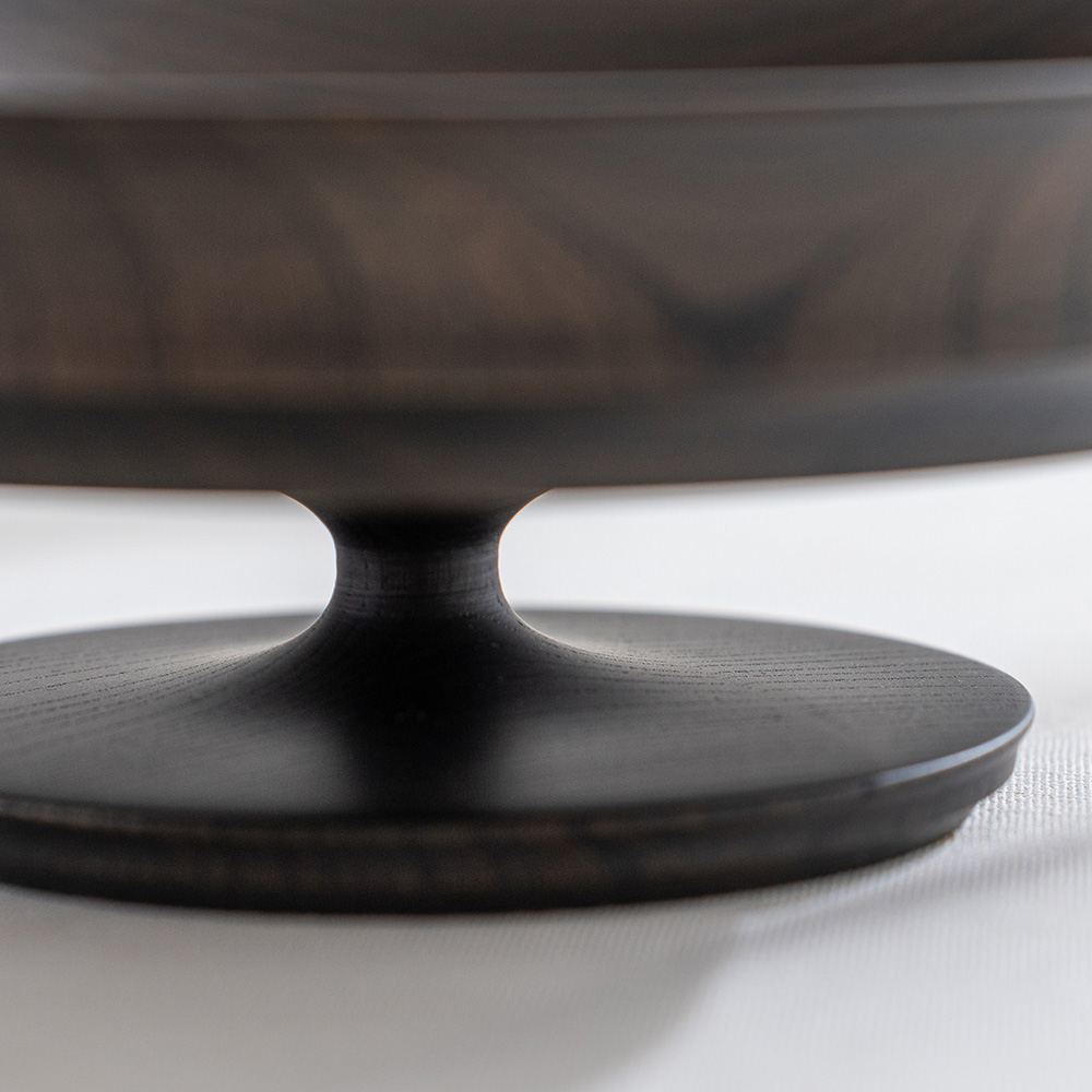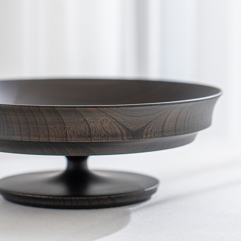 表面採用「拭漆」工藝,將生漆反覆擦拭滲透進木材紋理中,呈現出深邃的黑色外觀,同時保留並突顯了欅木天然、獨特的紋理與質感,隨著時光流轉,光澤愈發溫潤迷人。這款商品非常適合用作盛裝水果、甜點、沙拉,充分展現餐桌上的現代美學與儀式感。